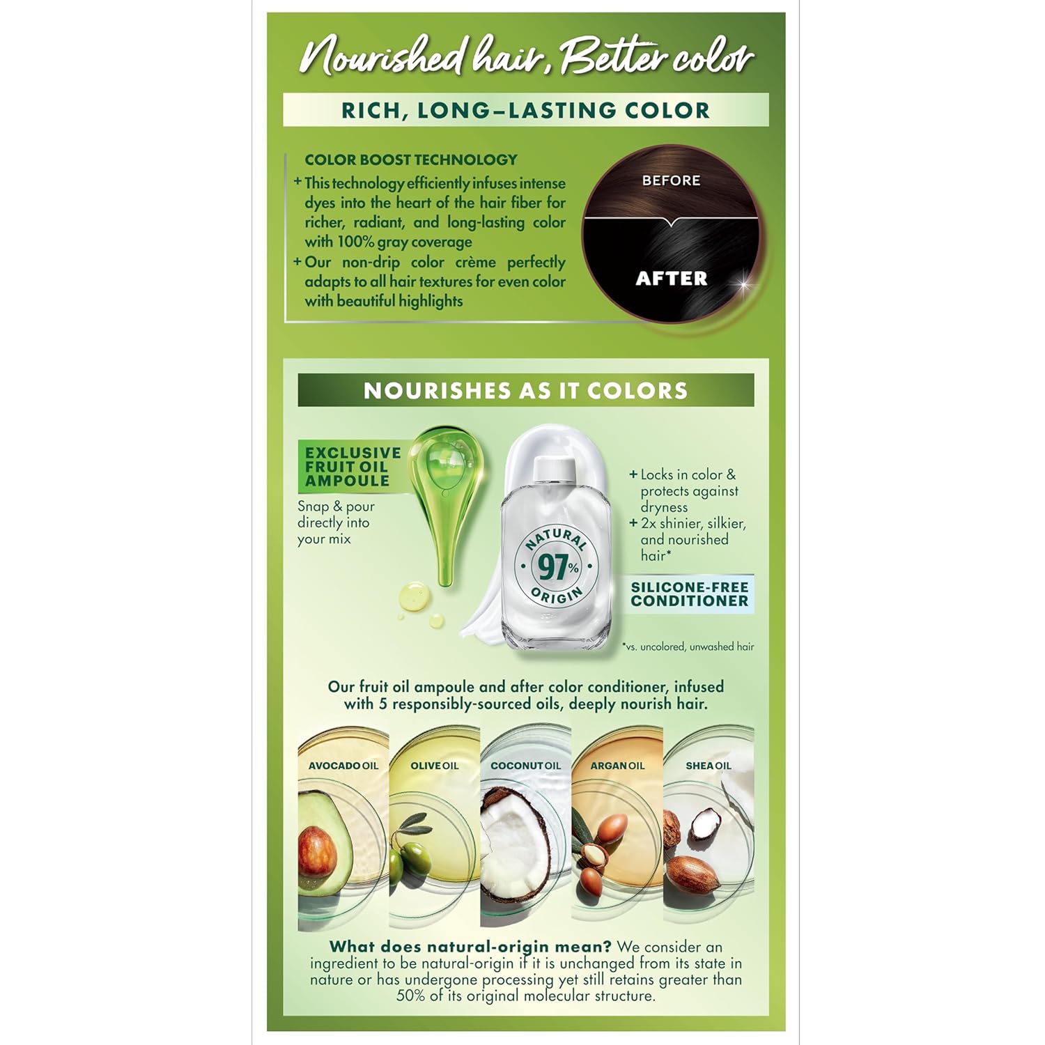 - Product Benefits : Discover the number 1 Nourishing Color Creme; Nutrisse Color is formulated with color boost technology and a blend of triple fruit oils: avocado, olive, and shea, to deliver permanent hair color, even to dark hair Discover the number 1 Nourishing Color Creme; Nutrisse Color is formulated with color boost technology and a blend of triple fruit oils: avocado, olive, and shea, to deliver permanent hair color, e⦠See more
