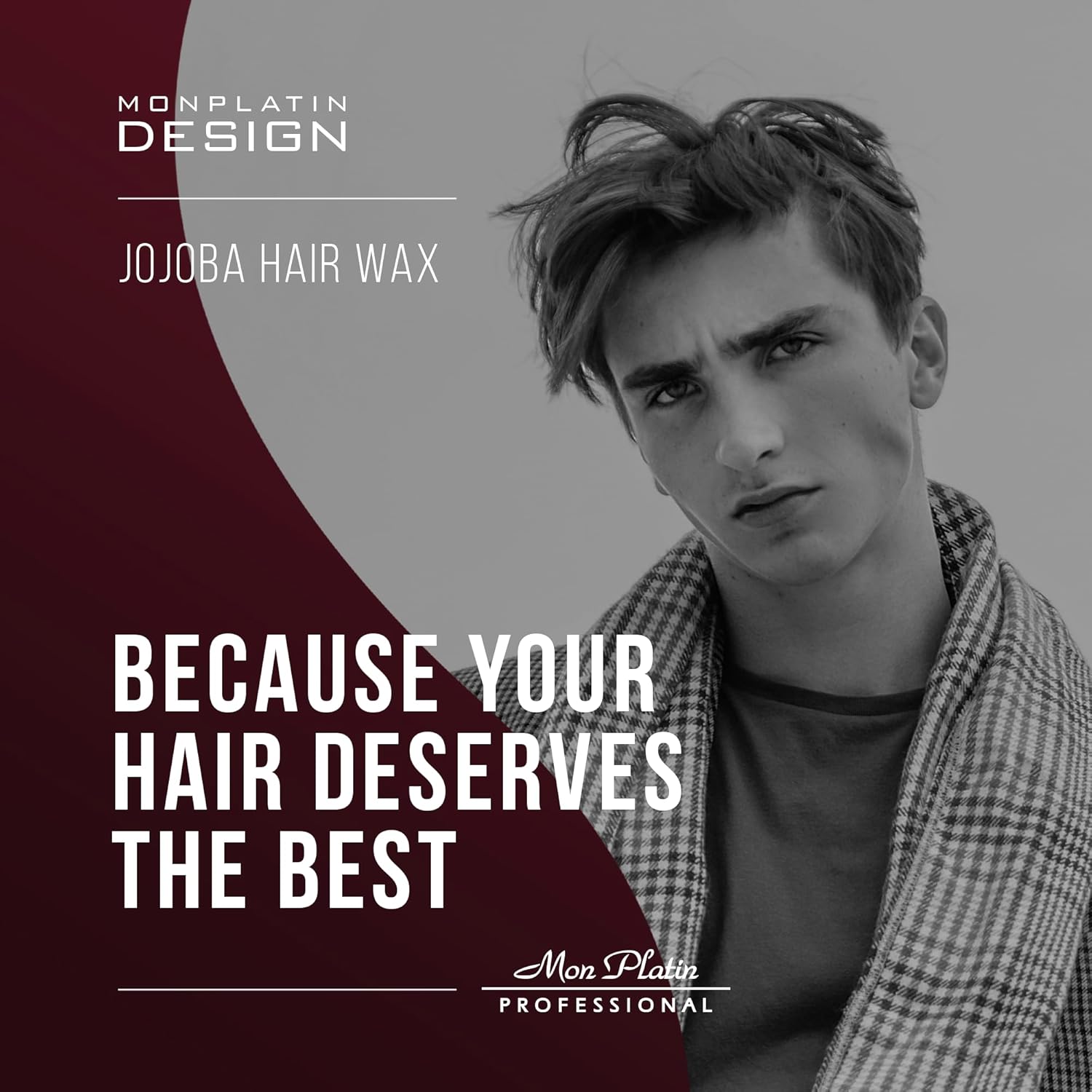 - NOURISHING TREATMENT: Say goodbye to dry, lifeless locks! Our Jojoba Clay Hair Wax is not just your average styling product; it's a nourishing treatment that showers your hair and scalp with organic jojoba extract goodness and smells divine, it's the ideal choice for your daily styling routine. Mon Platin menβs hair wax is easy to rinse out and leaves no sticky or greasy feeling, No residue, just well managed hair.