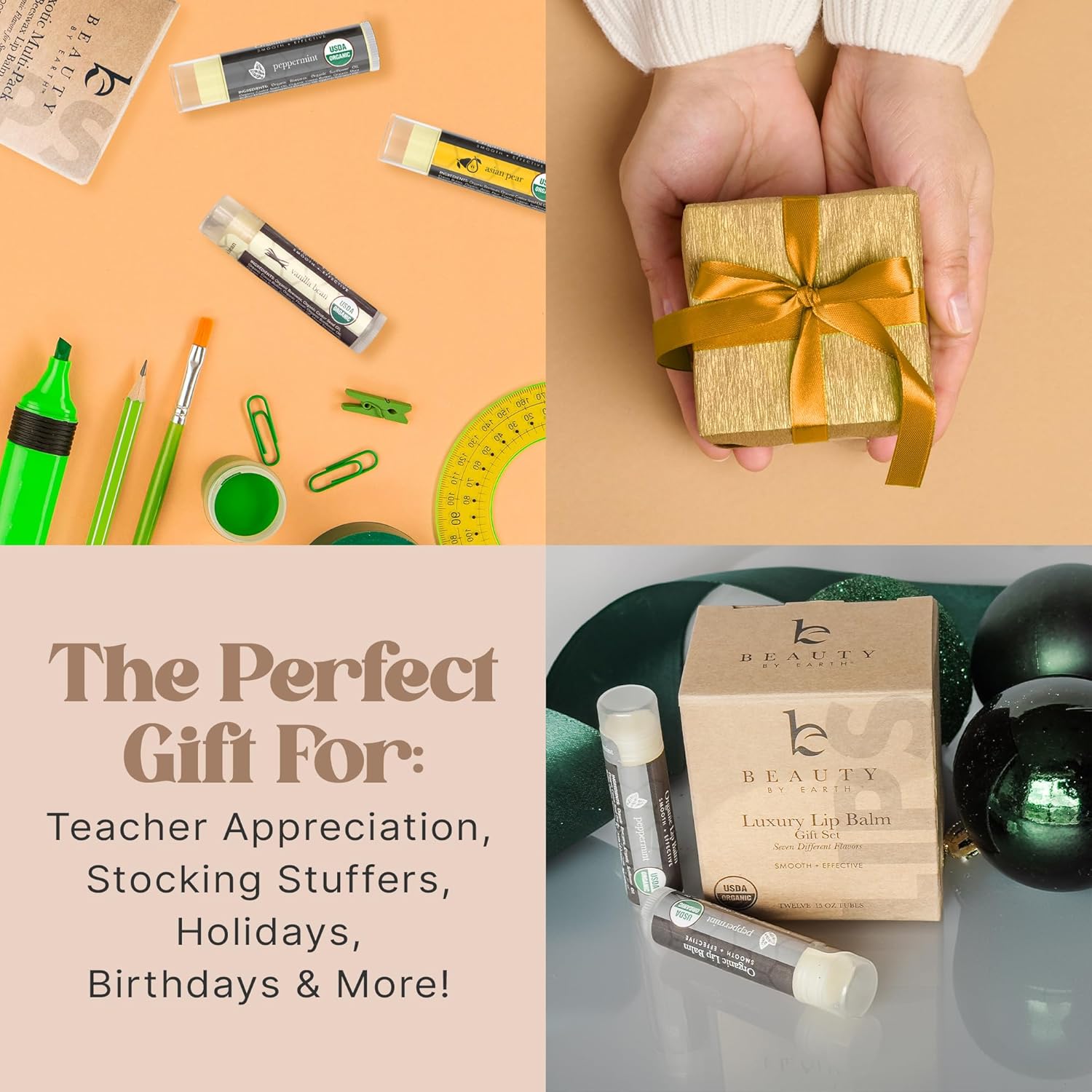 USDA Organic Lip Balm - USA Made with Natural Ingredients, 12 Pack Multi Flavor Lips Moisturizer, Moisturizing Lip Care, Beauty & Birthday Gifts, Moisturizer Chapstick Bulk Care for Dry Lips