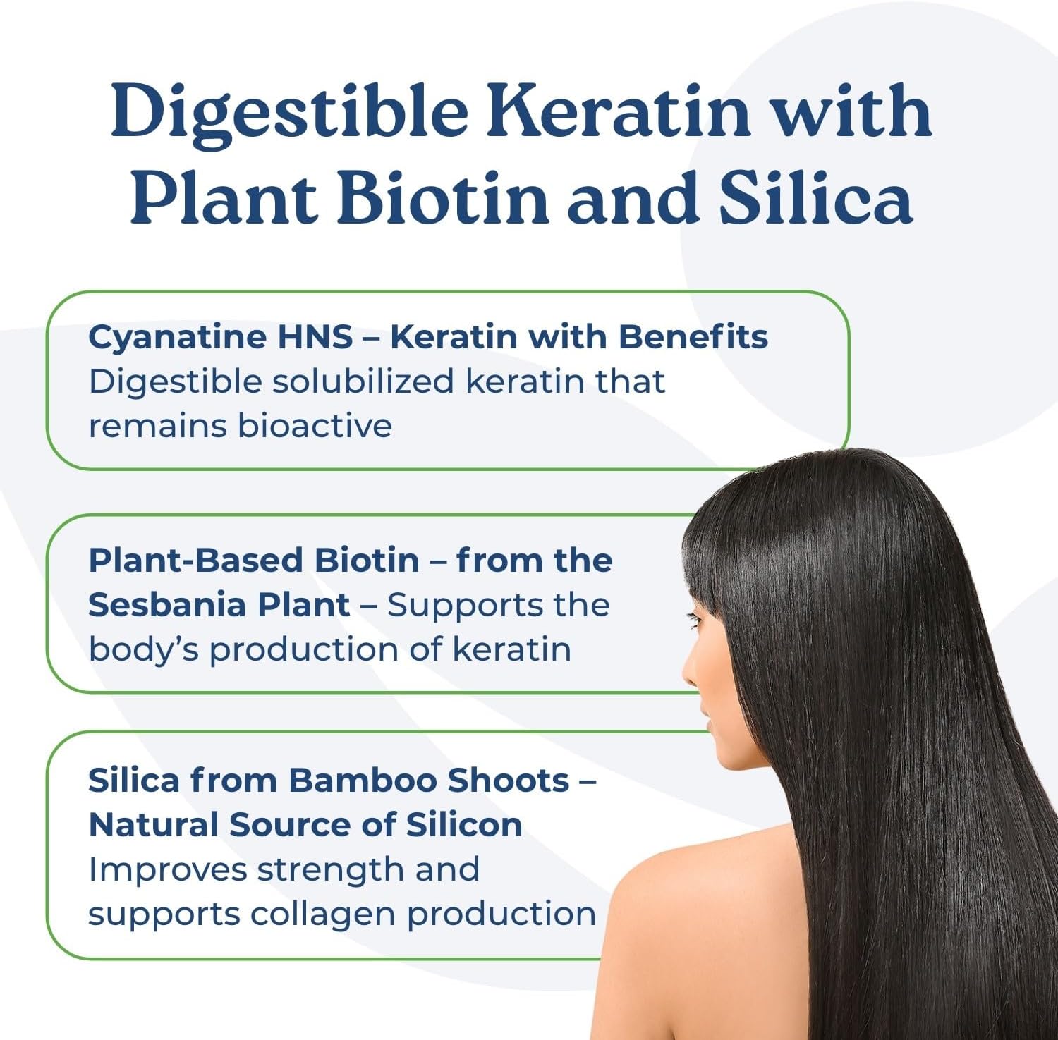 - BEAUTIFUL LOOKING HAIR, GLOWING SKIN, AND STRONG NAILS โ TrueHNS contains Cynatine HNS, a keratin protein thatโs solubilized so you can digest it while leaving the keratin intact. You nourish your body with bioactive keratin that research found can improve the look of your hair, skin, and nails without harming any animals. Easy to swallow veggie capsules.