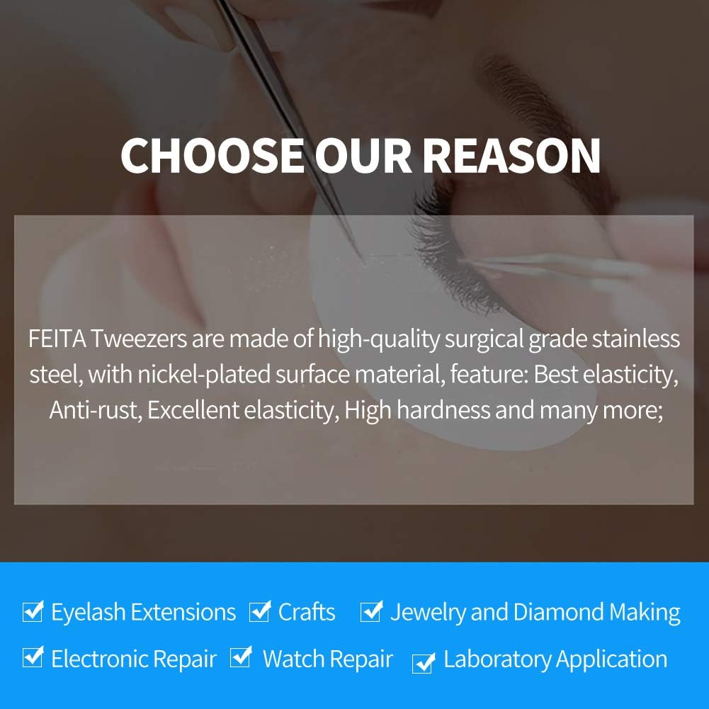 - β¦ COMFORTABLE HAND FEELING - FEITA Professional tweezers can adapt to a long-term work with the appearance of smooth lines and fine processing.