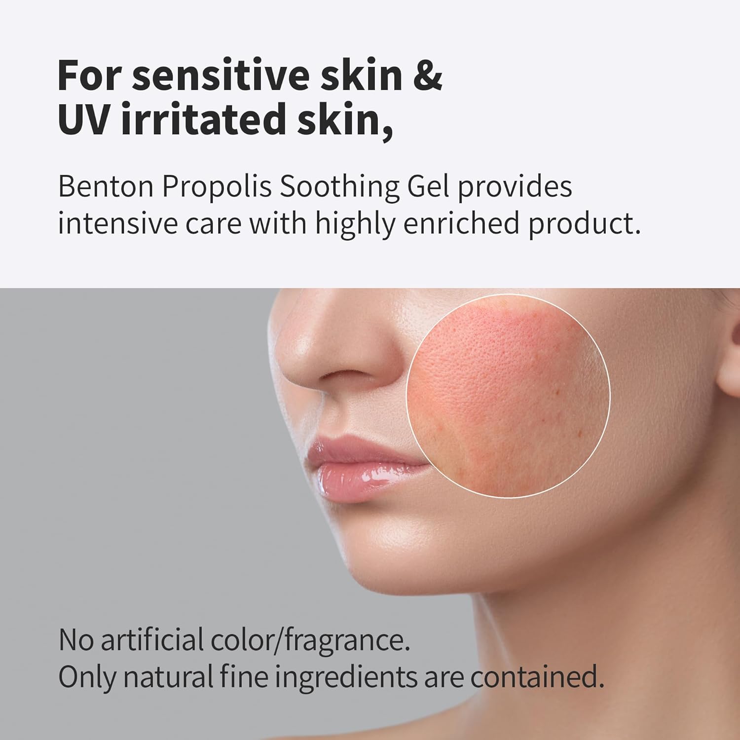 BENTON Aloe Propolis Soothing Gel 3.38 fl oz | Aloe Vera Gel for Sunburn Relief | Aloe Vera Gel for Travel Size | Aloe Vera Gel Moisturizer for Face | Aloe Gel for Face After Sun | Organic Aloe Vera