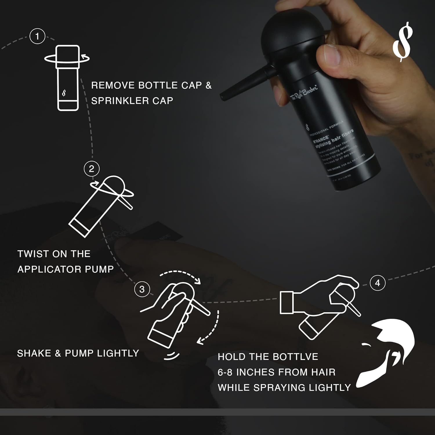 - Complete Styling Set - Enjoy max value with this hair set. It includes the following Rich Barber exclusive hair products: 25g bottle of N'Hance Hair Building fibers, an applicator pump, and an application card.