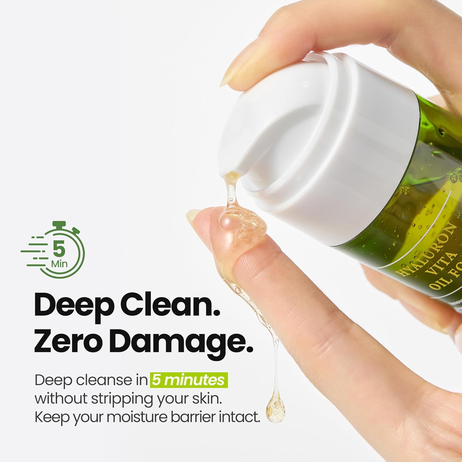 [K-Beauty] Hyaluron Vita Oil to Foam - All-in-One Korean Face Wash OilBased Foaming Facial Cleanser - Pore Minimizing & Blackhead Remover - Makeup Deep Cleansing Oil for Dry Skin (3.88 fl oz)