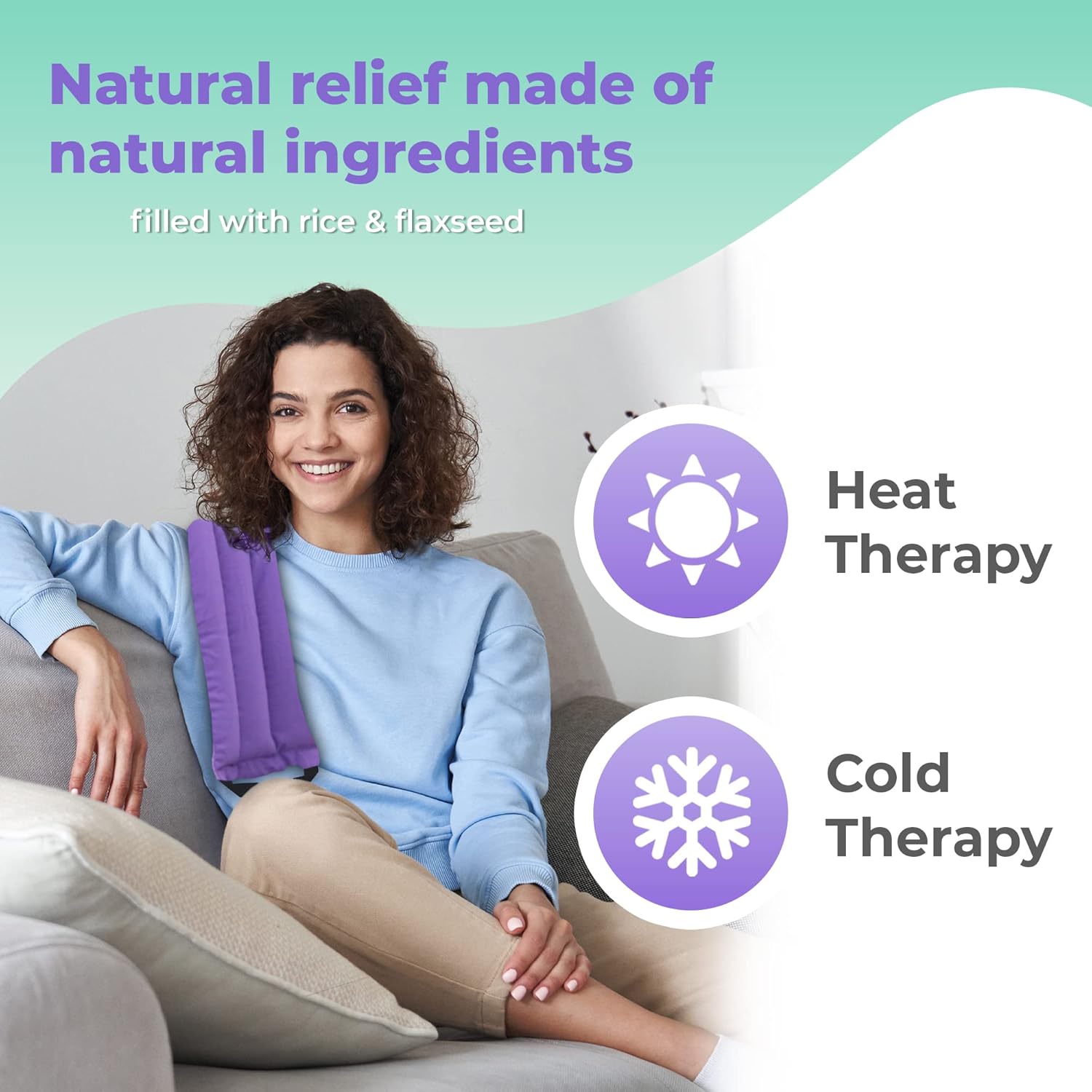 - FIGHT INDOOR COLD: Say goodbye to cold offices or homes and say hello to the warmth provided by our microwavable moist neck, lower back, and shoulder heating pads. Our microwave heat pack utilizes flax and rice which are natural ingredients that excel at holding heat for long periods of time. This heat pad for neck and shoulders, as well as other parts of the body, keeps you warm and cozy no matter where you are.