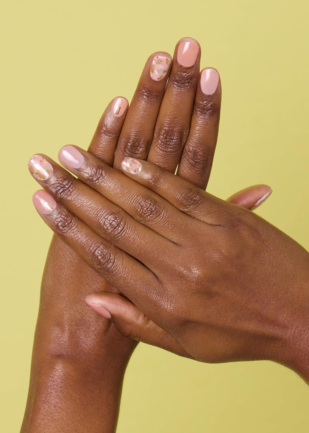 ohora Semi Cured Gel Nail Strips (N Lazy Sunday) - Pink, Patterned, Works with Any UV/LED Lamps, Salon-Quality, Long Lasting, Easy to Apply & Remove - Includes 2 Prep Pads, Nail File & Wooden Stick