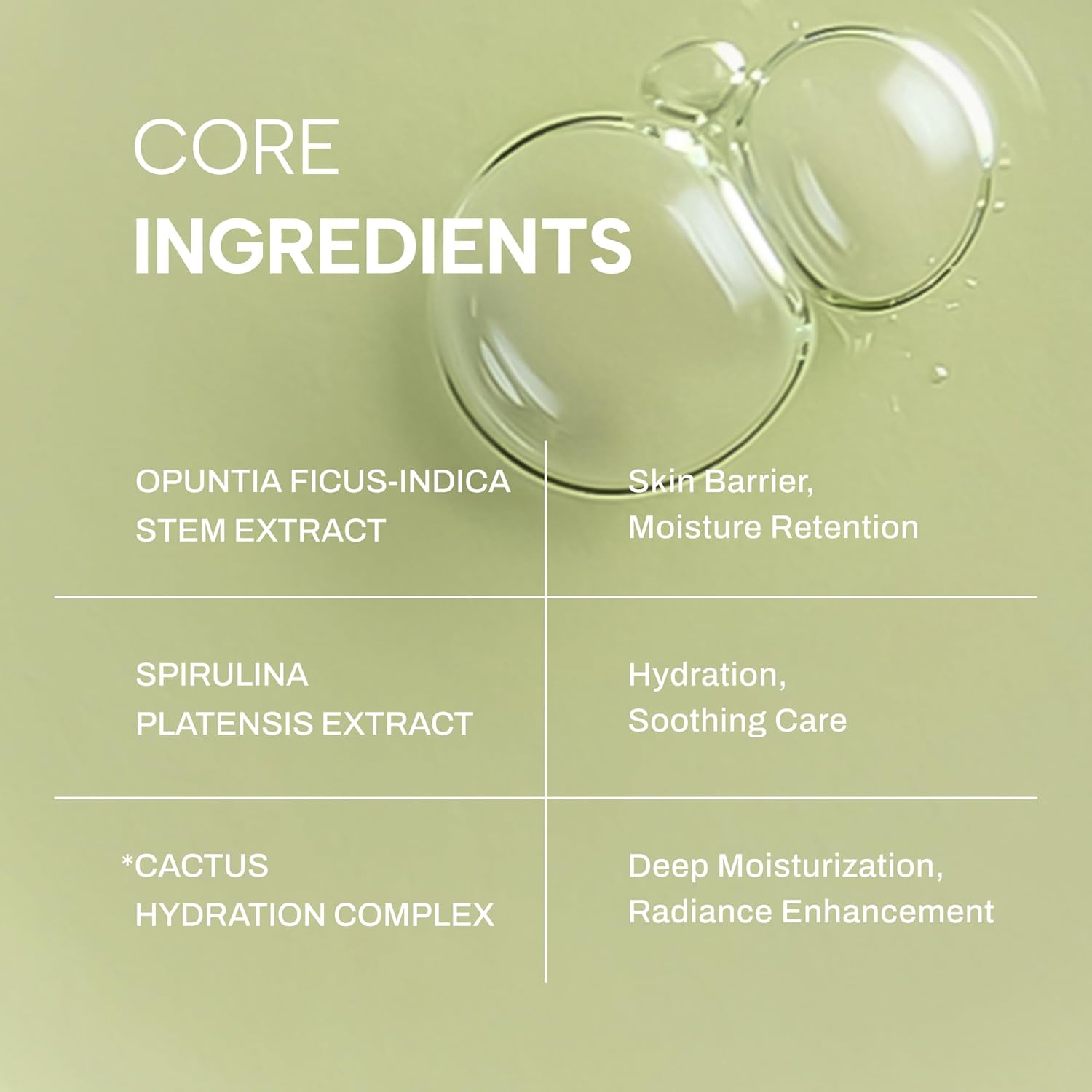 - LONG LASTING HYDRATION : Cactus stem mucilage quickly infuses surface and deeper layers, retaining moisture for up to 72 hours surface and 48 hours for inner skin. Enjoy comfortably hydrated skin that truly lasts.