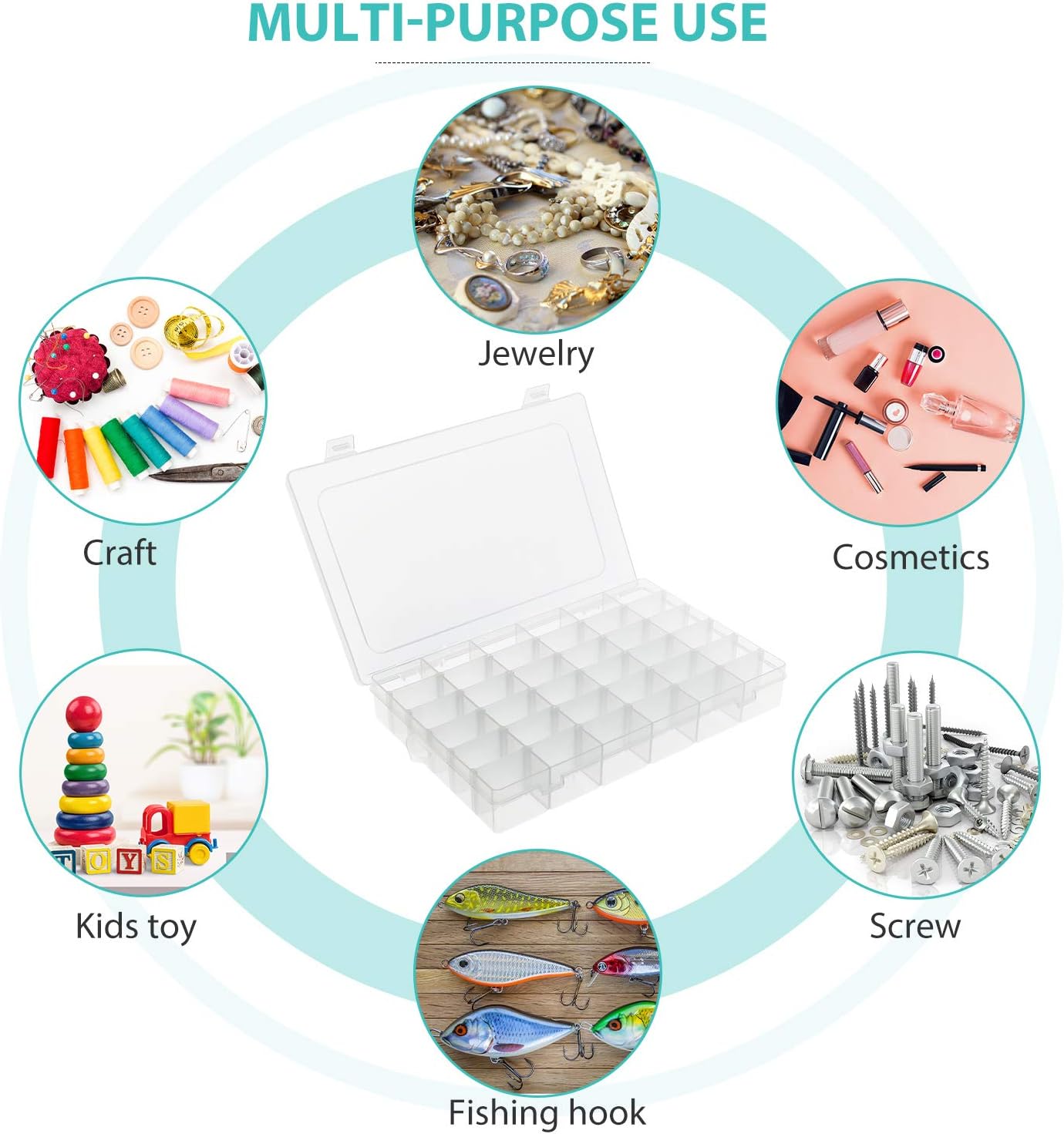 2 Pack 36 Grids Bead Organizer Box, Plastic Craft Organizers and Storage with Adjustable Dividers, Screw, Parts & Tackle Box for Jewelry Making, Art Supplies and Rock Display Case