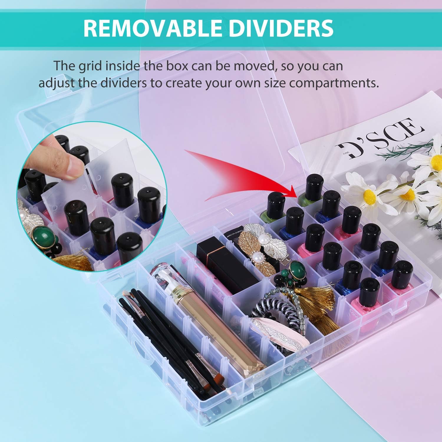 - 【Large Capacity & Adjustable Grid Design】: 2-Pack plastic organizer boxes each feature 36 removable compartments (10.6" x 6.89" x 1.77"). Customize cell sizes with horizontal dividers for beads, screws, jewelry, or fishing tackle. Ideal for versatile storage needs