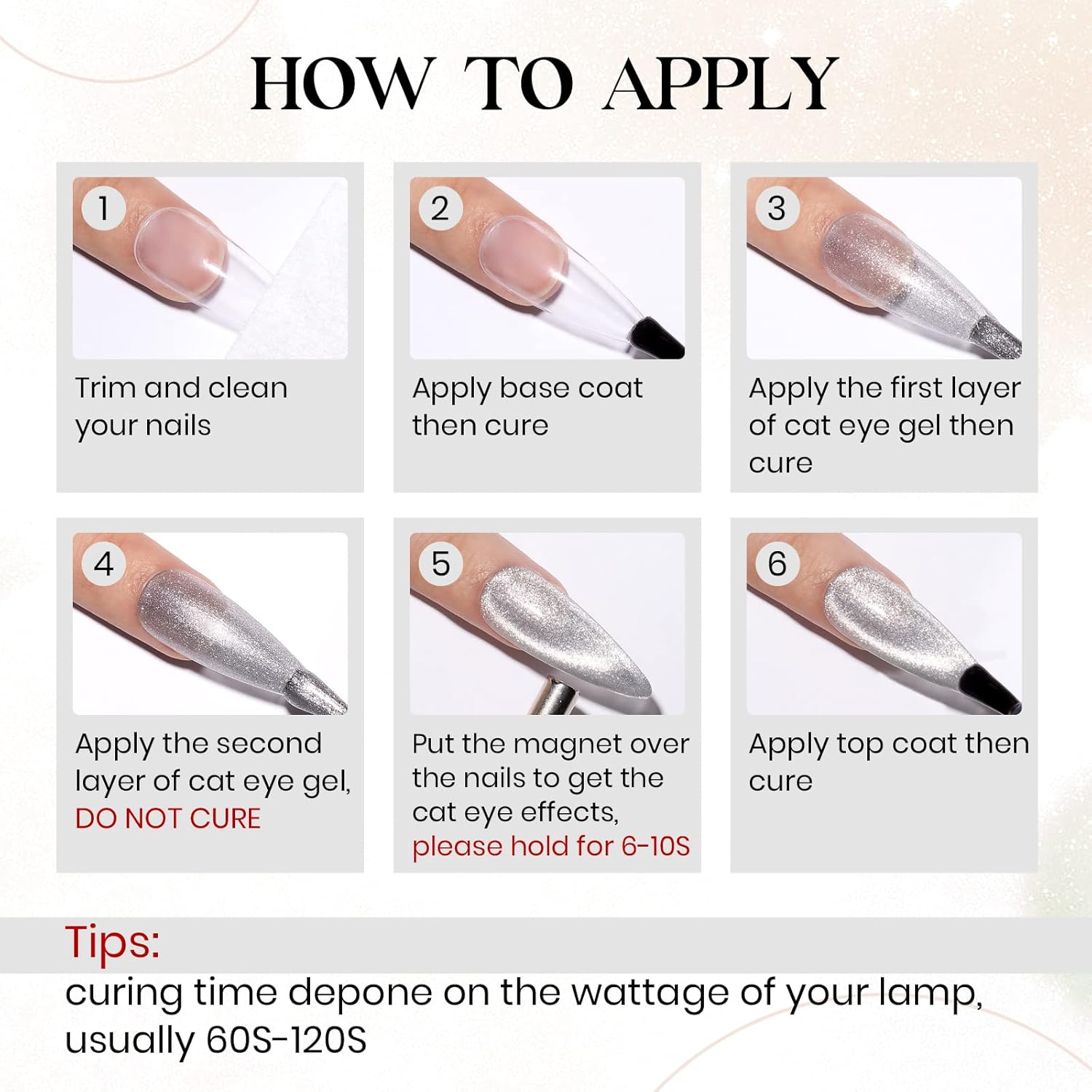 - Charming Effect: The Cat Eye Nail Gel Polish can match any color gel for the base color gel you like. This Cat Eye Nail allows you to have many kinds of charming effects and attract attention on any occasions