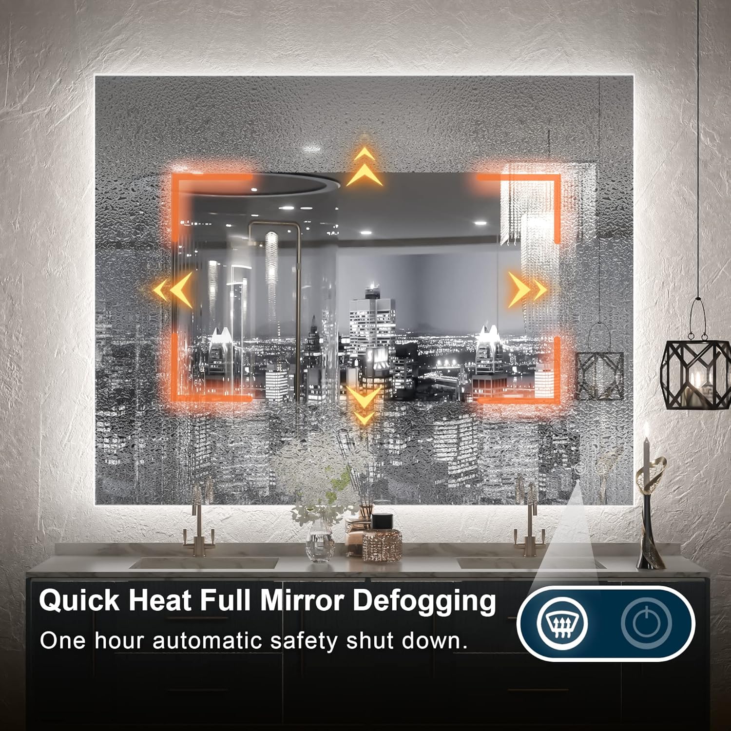 - ✨【Perfect bathroom mirror】-U.S Design Environmental Friendly,Copper free HQ Silver coating glass with IP54 waterproof LED ensures 100% safety in wet bathroom.