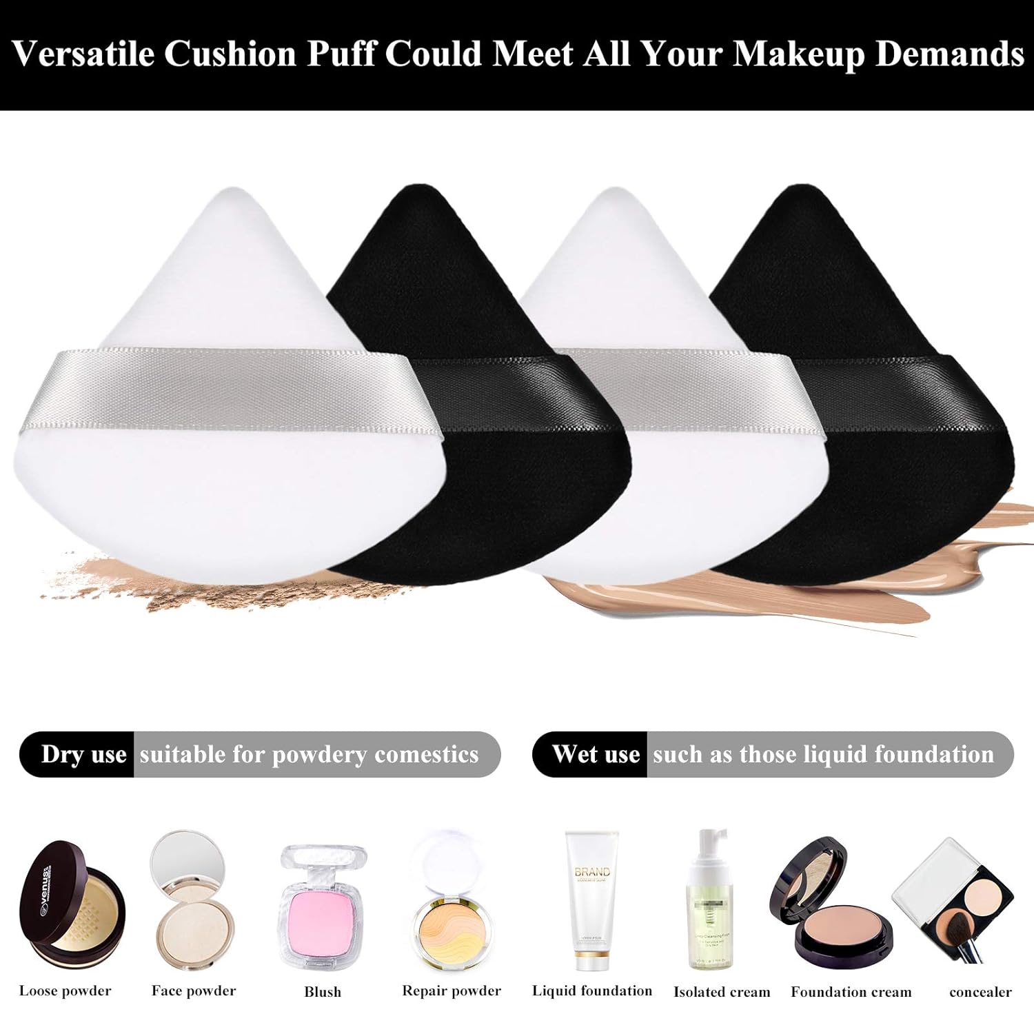 - Diverse usages: our triangle shape powder puffs are suitable for dry and wet cosmetics, such as foundation, blush, loose powder, powder, body powder, concealer and more, easy to apply on the nose or eyes, but if you wear this puff, it could delicately apply your makeup
