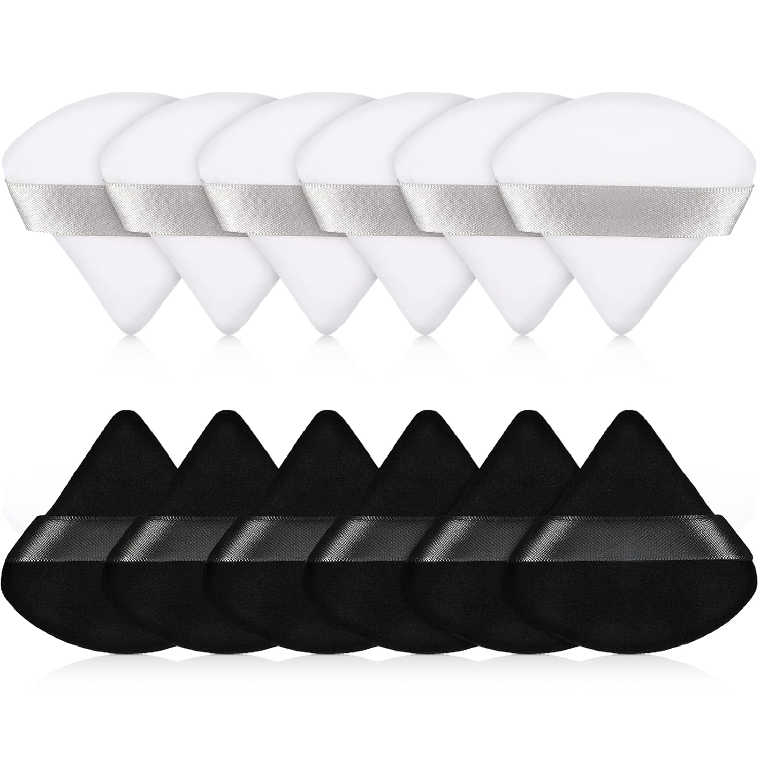 Maitys 12 Pieces Powder Puff Triangle Face Makeup Cosmetic for Loose Powder Soft Body Washable Reusable Foundation Sponge Mineral Wet Dry Makeup Tool(Black, White, Small)