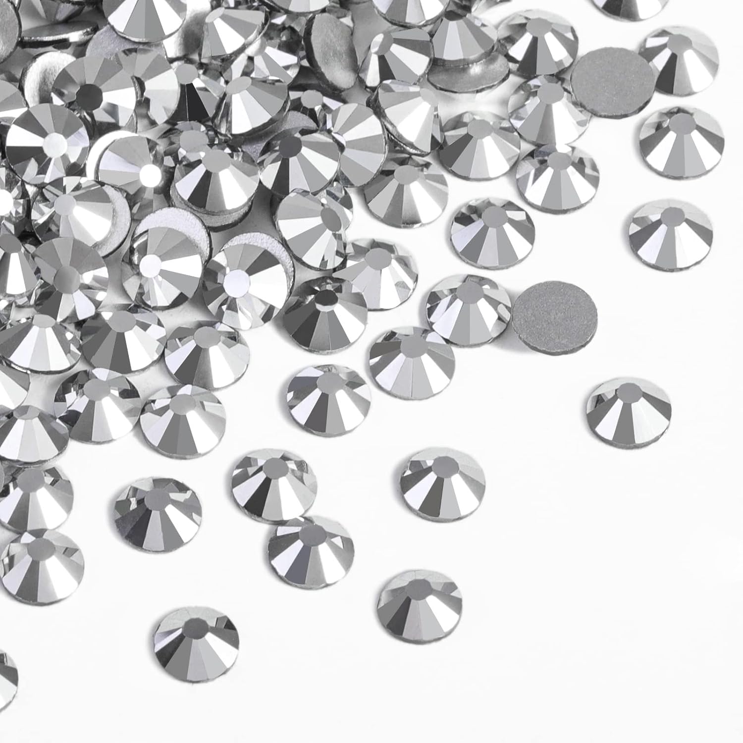 beadsland Flat Back Crystal Rhinestones Round Gems for Nail Art and Craft Glue Fix,Silver Hematite (6.4-6.6mm) SS30/288pcs