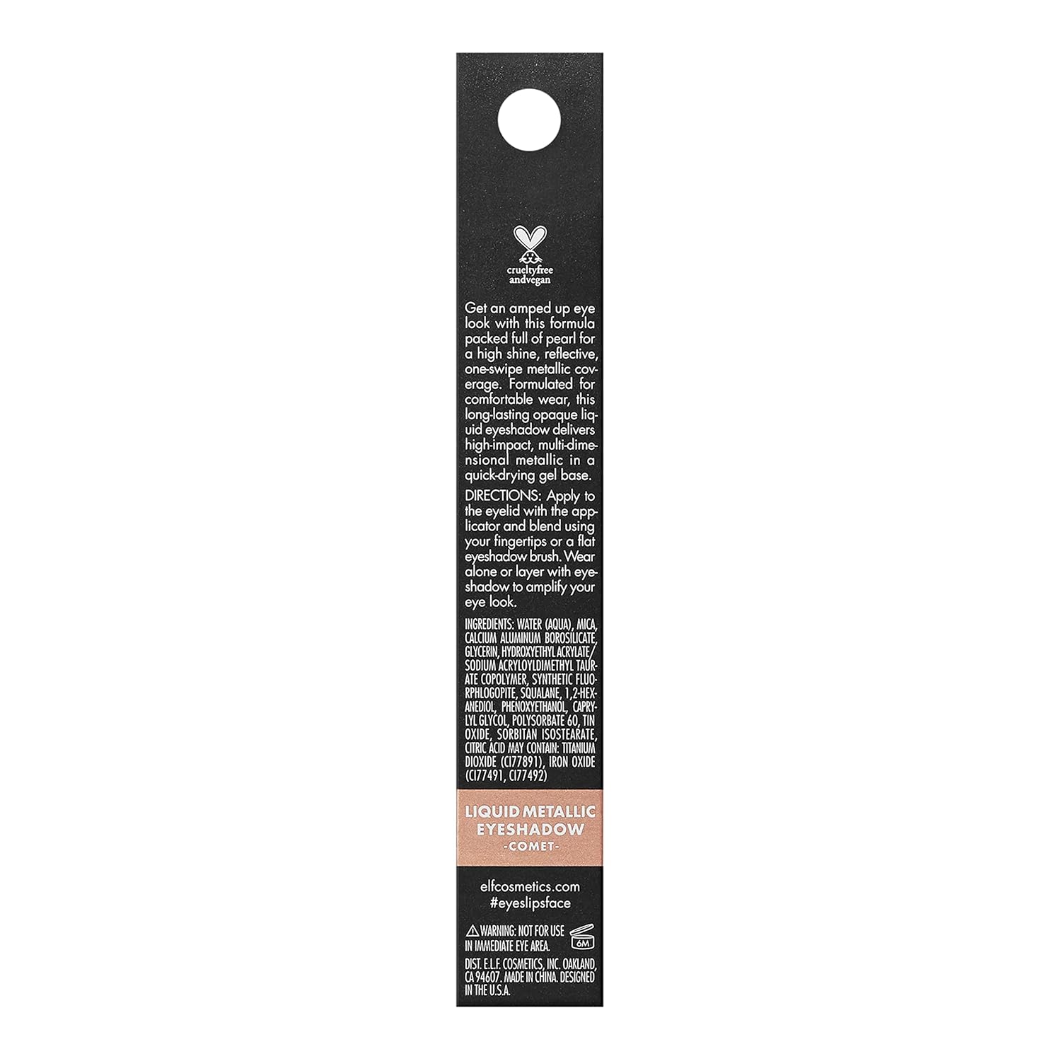 - AMPED UP EYE LOOK: Get an amped up eye look with e.l.f. Liquid Metallic Eyeshadow! This liquid eyeshadow delivers a high-impact, metallic finish through multi-dimensional metallic pearls. The shade Comet is rose gold with cool silver shimmer.