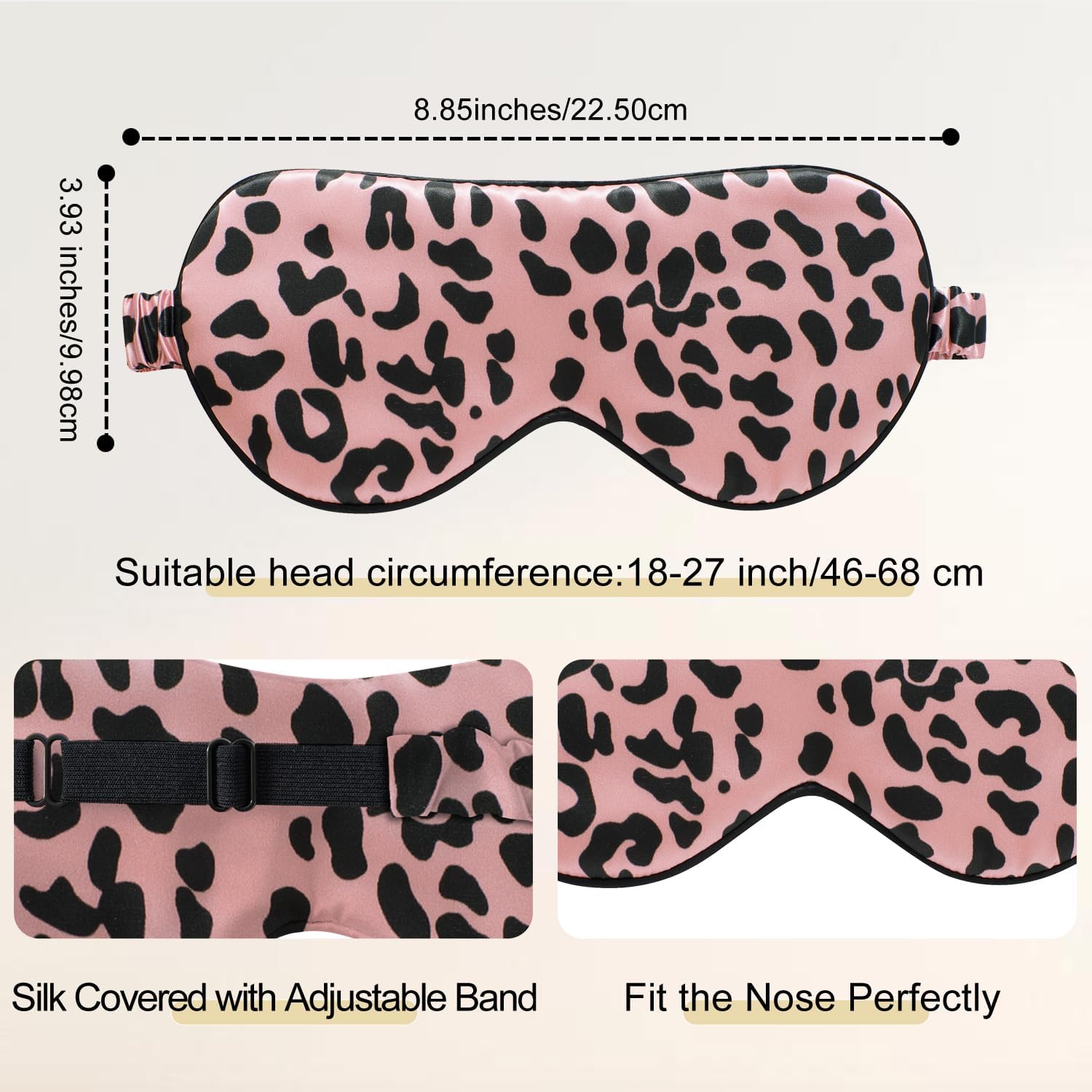 ZIMASILK Adjustable 100% 22 Momme Mulberry Silk Sleep Mask for Sleeping, Filled with Premium Mulberry Silk, Softest & Breathable Eye Sleeping Mask (Leopard - Black Pink)