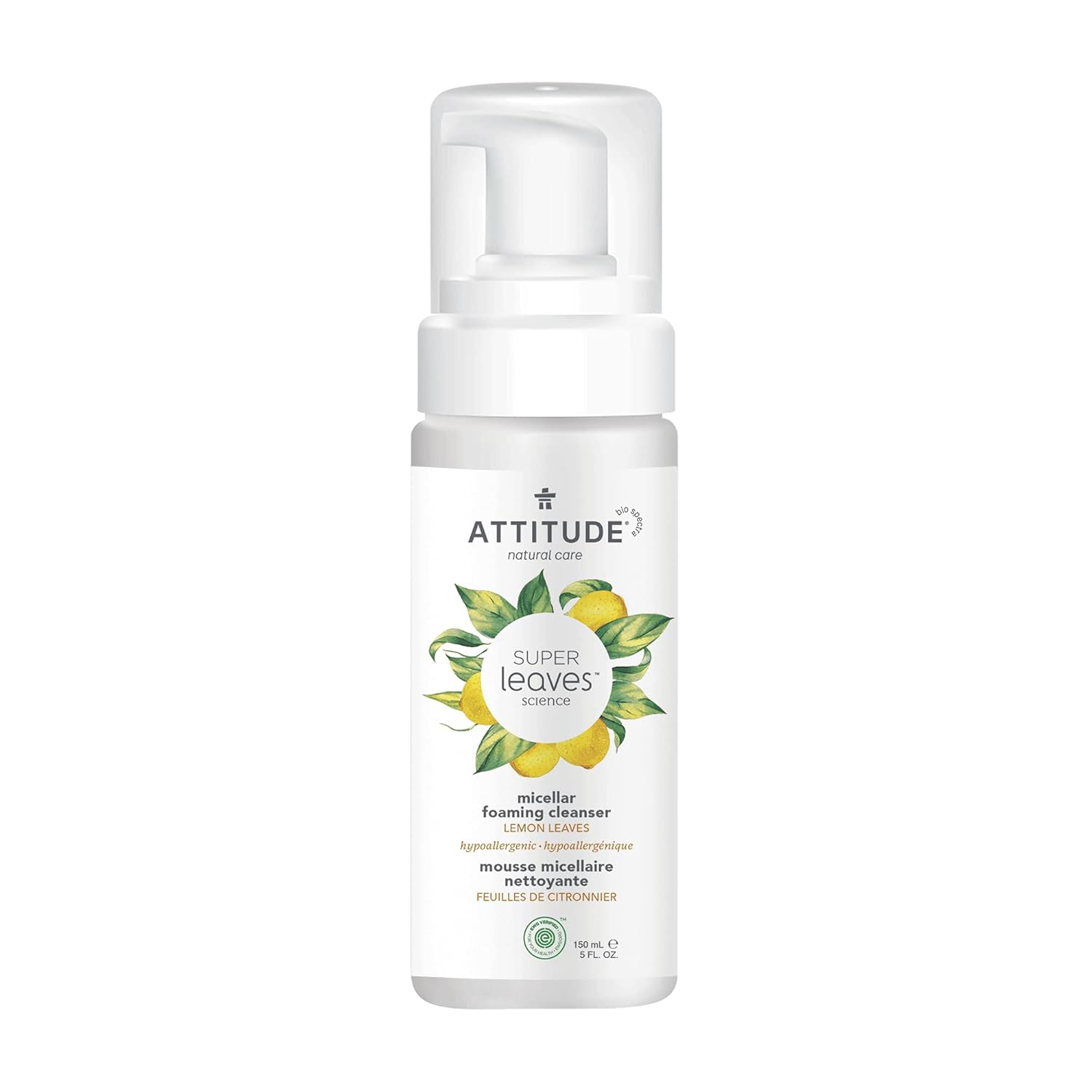 ATTITUDE Micellar Foaming Facial Cleanser, EWG Verified, Dermatologically Tested, Plant and Mineral-Based, Vegan, Lemon Leaves, 5 Fl Oz
