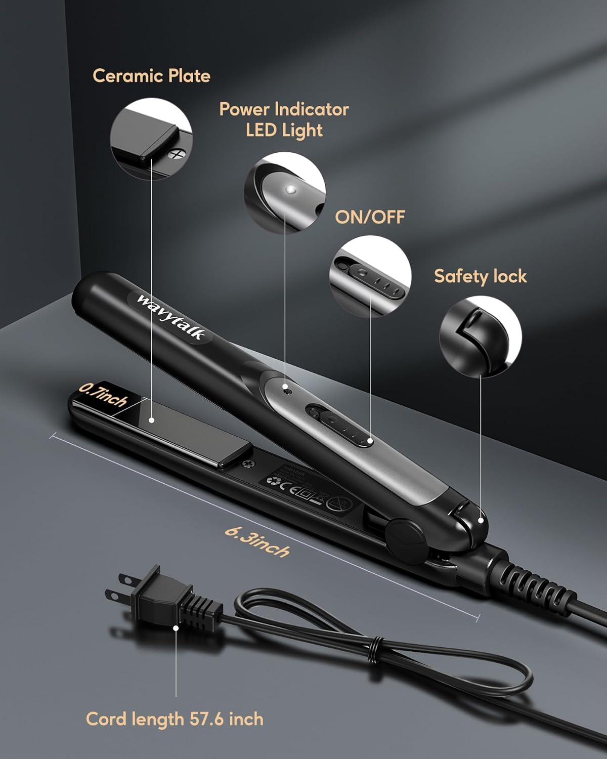 Wavytalk Mini Flat Iron 0.7 Inch Ceramic Mini Hair Straightener, Small Flat Irons for Short Hair, Curls Bangs, Dual Voltage for Travel