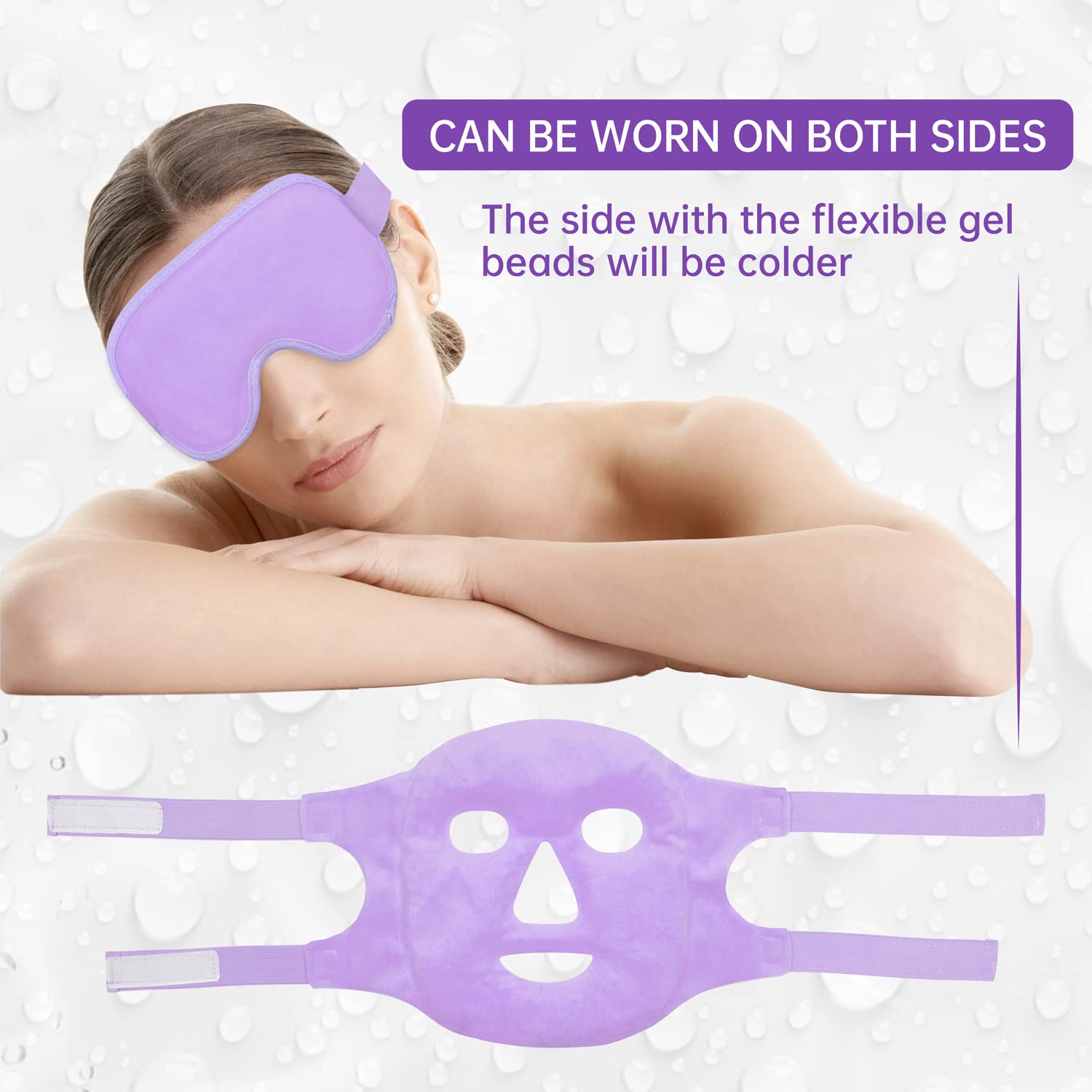 - 【REVERSIBLE DOUBLE-SIDE DESIGN】This ice eye & face mask are made with medical grade gel beads with a premium PVC cover on one side and soft fabric on the other to ensure optimal safety as you sleep. The soft plush side allows direct-skin use, provides dual temperatures, and extend hot or cold therapy time, while the silicone side for direct colder experience.