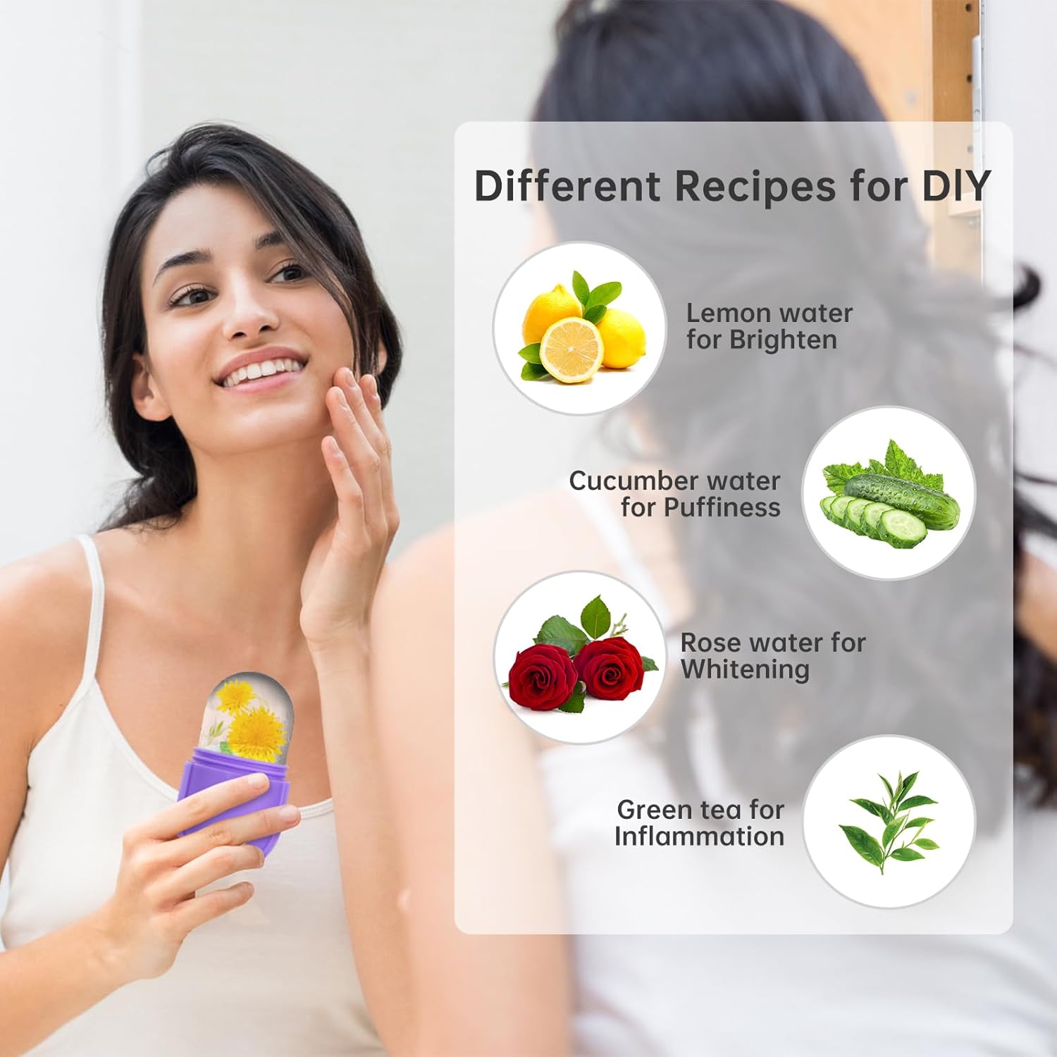 IMEASY Ice Roller for Face and Eye, Upgrated Skin Care Tools, Ice Facial Cube, Gua Sha Face Massage, Silicone Ice Mold for Face Beauty (Purple)