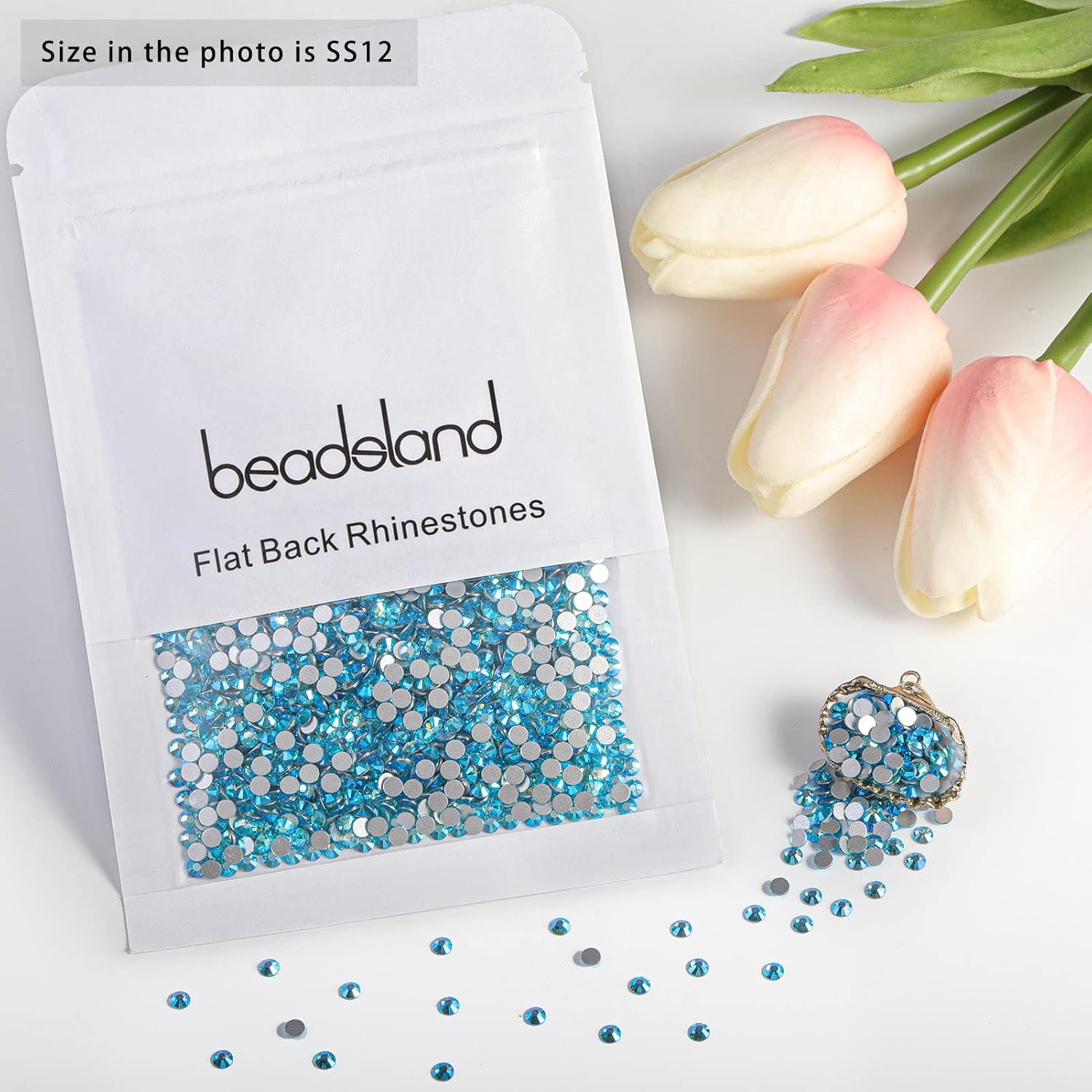 Beadsland 1440 Pieces Flat Back Crystal Rhinestones Round Gems,Aquamarine AB,SS12,3.0-3.2mm