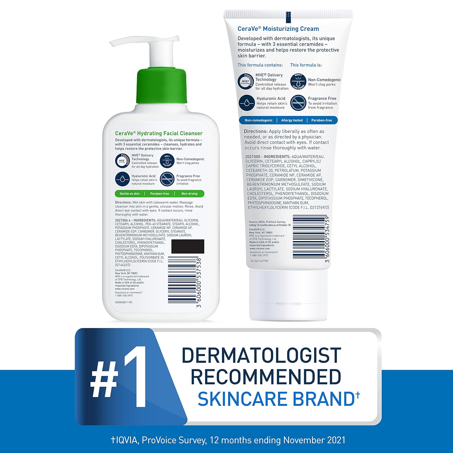 CeraVe Hydrating Skin Care Set, 8oz Moisturizing Cream & 8oz Hydrating Facial Cleanser, Ceramides + Hyaluronic Acid Moisturizer and Face Wash, Accepted by National Eczema Association