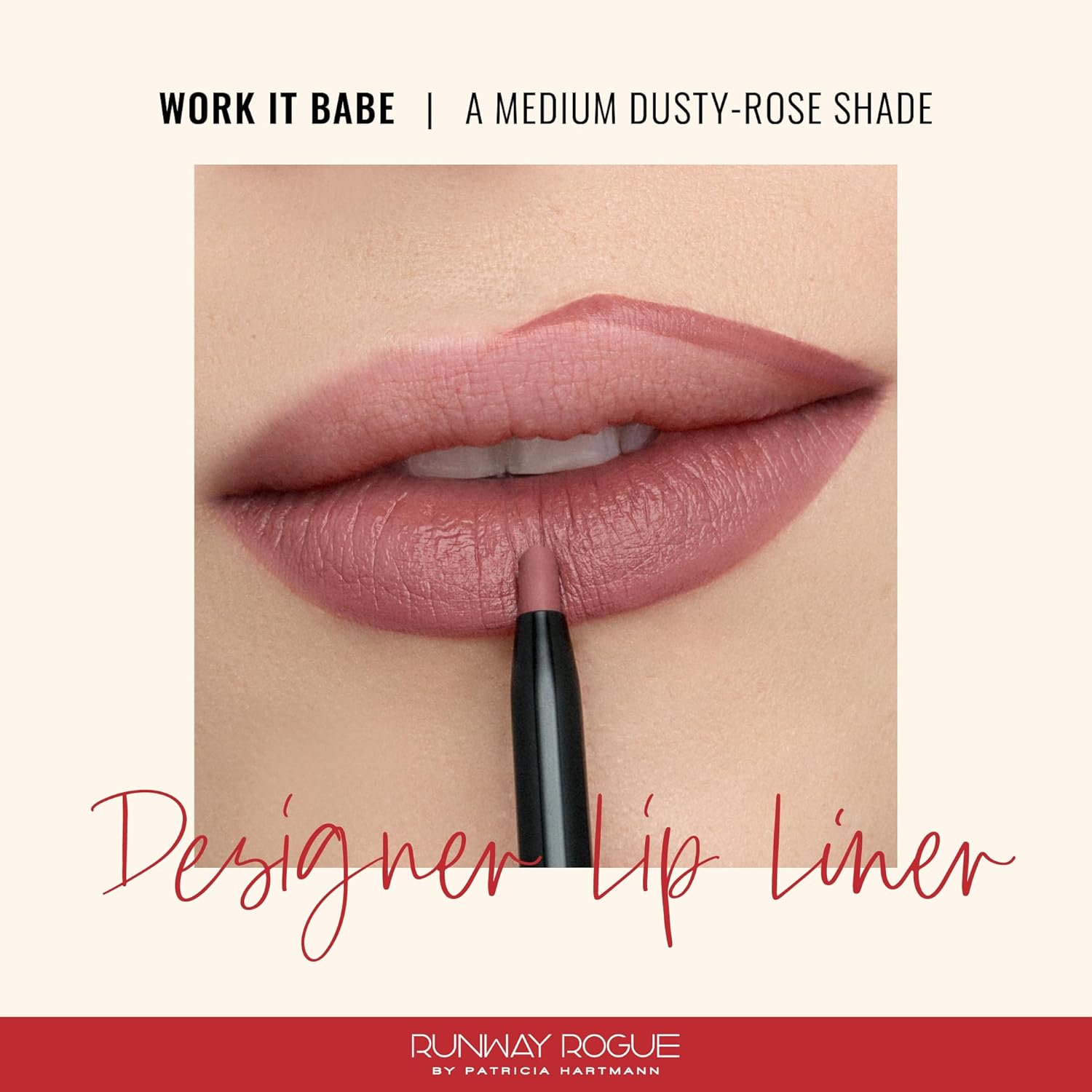 - MATTE LIP LINER PENCIL: Designer Lip Liner is a creamy matte lip pencil designed to help contour and enhance your natural lip shape, keep your lipstick in place, and prevent lipstick from feathering and bleeding while also improving its long wear and lip color. ‘Work It Babe’ is a medium dusty-rose lip liner shade.