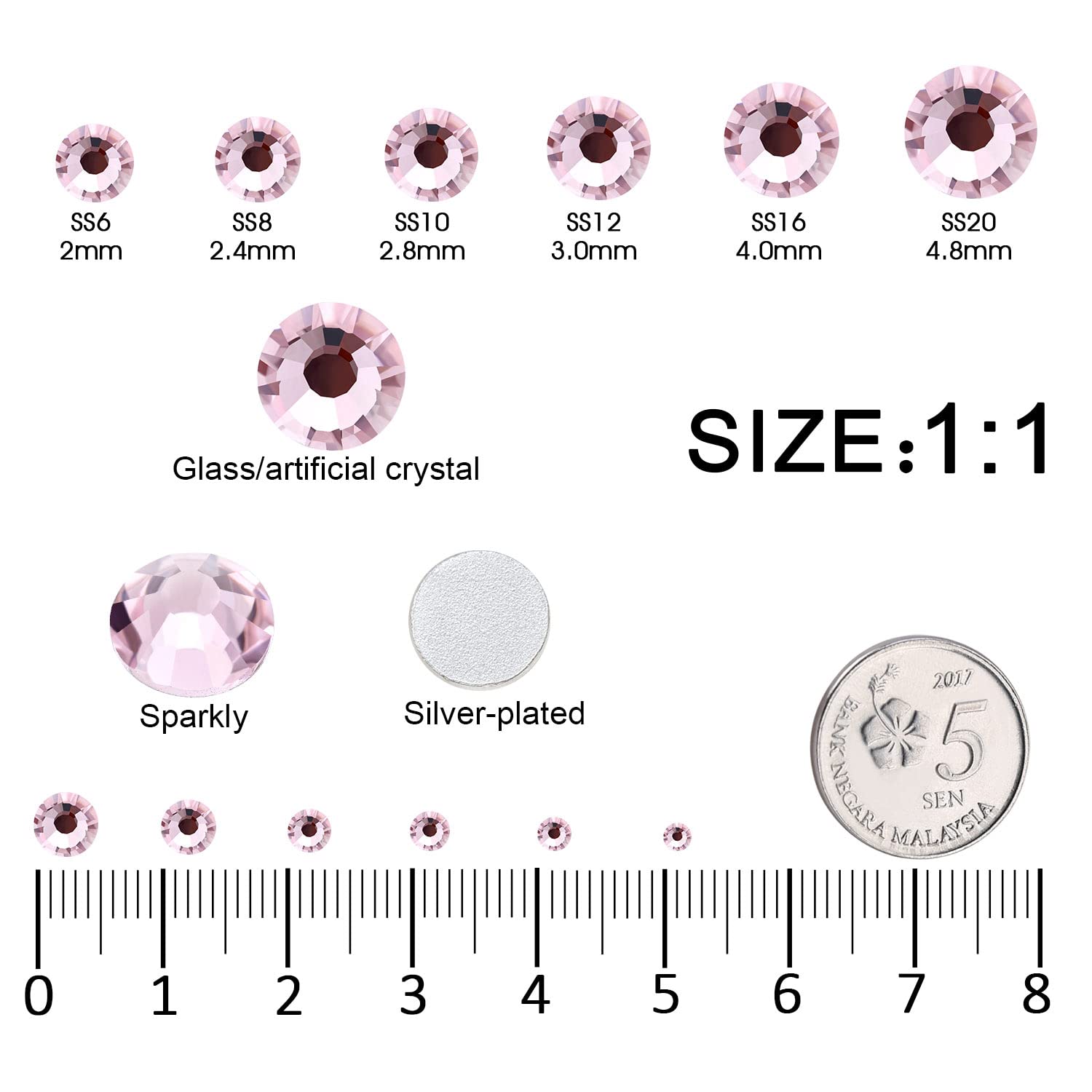 - 💎Material: Glass/Artificial Crystal. Surface High-precision cross-section, multi-sided cutting, high brightness,high Sparkly. Flatback, Round,Silver-plated back, not easy to be allergic. Note that the color changes with the angle and light. color surface plating, not easy to fade.