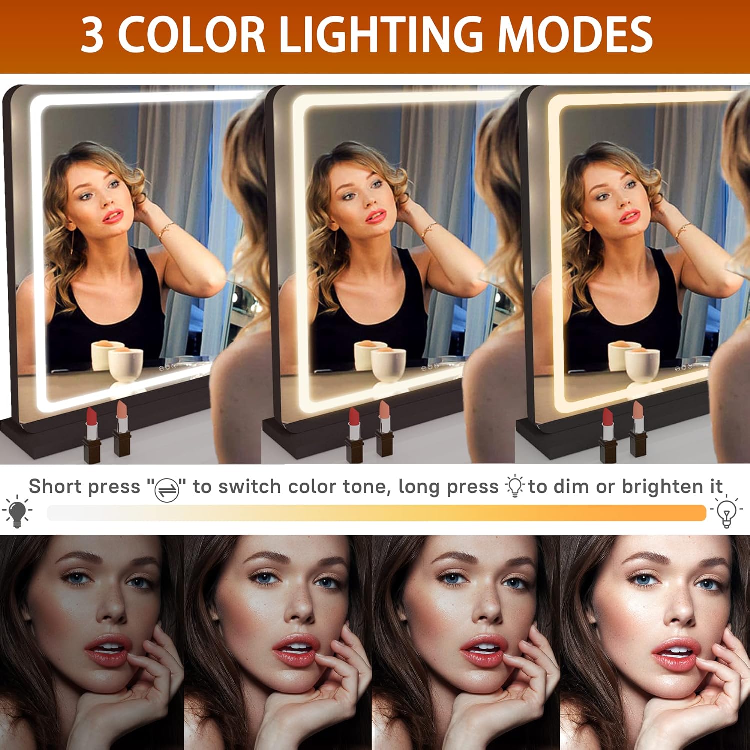 - 👍【Smart Touch Control & Memory Function】This makeup mirror with lights has 3 smart touch buttons, turn on/off the light by touching the sensor switch, Press left button to change the color modes, long press right button to adjust the led brightness. This lighted makeup mirror is specially designed memory functionfunction keep your lights setting like your last use.
