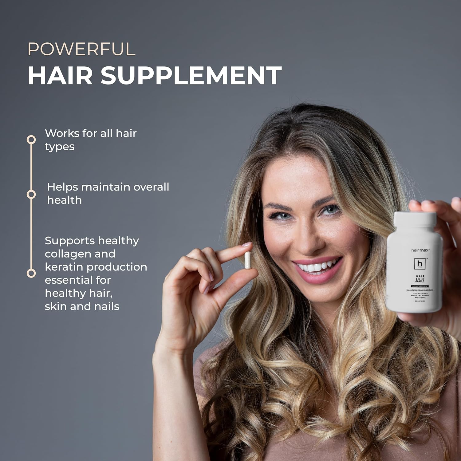 Hairmax for Hair, Skin and Nails Dietary Supplement – Hair Loss and Hair Regrowth Treatment for Women and Men. Contains 2500mcg Biotin, DHT Blocker, MSM & Antioxidants, Pack of 2 Bottles