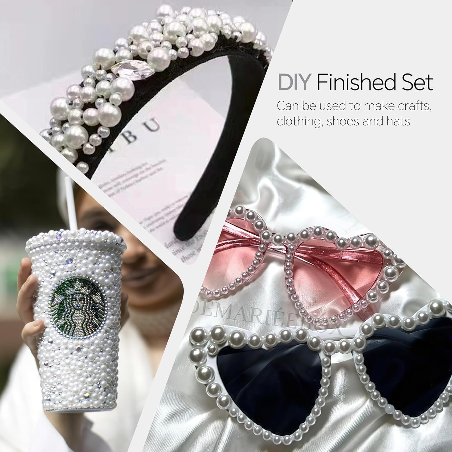 - What You Will Receive: 60g(30g*2)mixed size flat back pearls and rhinestones. 3*Rhinestone Glue. 1* wax pencil for rhinestones. 1*Pencil sharpener(color random). The mix half round pearls and rhinestones can make more beautiful handicrafts for your friends, parents, yourselfs on any festivals.If you need a mixed size pack of pearl rhinestones, search on Amazon:B0BBL1KVMD
