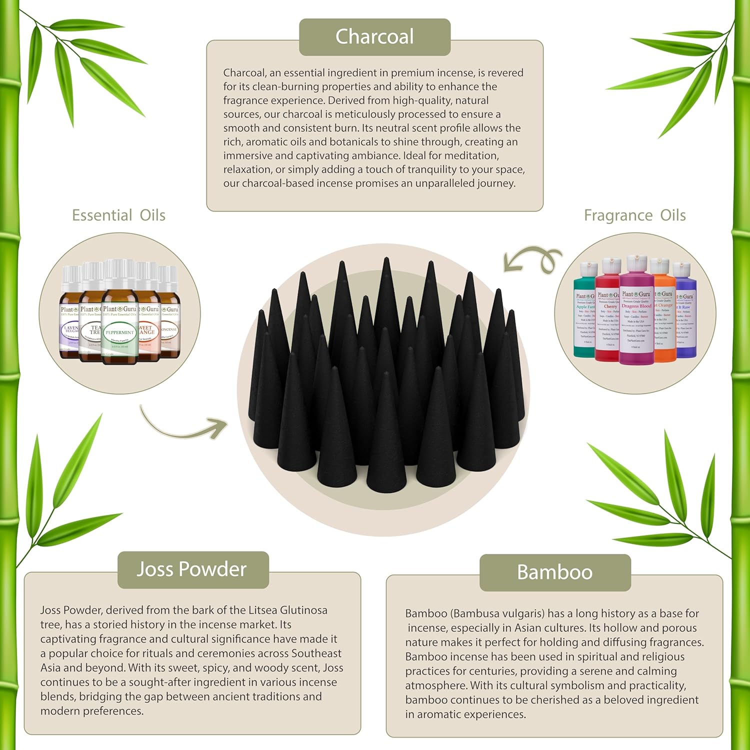 - β MADE IN THE USA - 60 Cones Per Pack - Hand dipped daily using premium grade fragrance Oils. Each cone is 2'' inches long and made of high-quality charcoal. Hand dipped for 48 hours. Burns time is approximately 25 to 30 minutes.