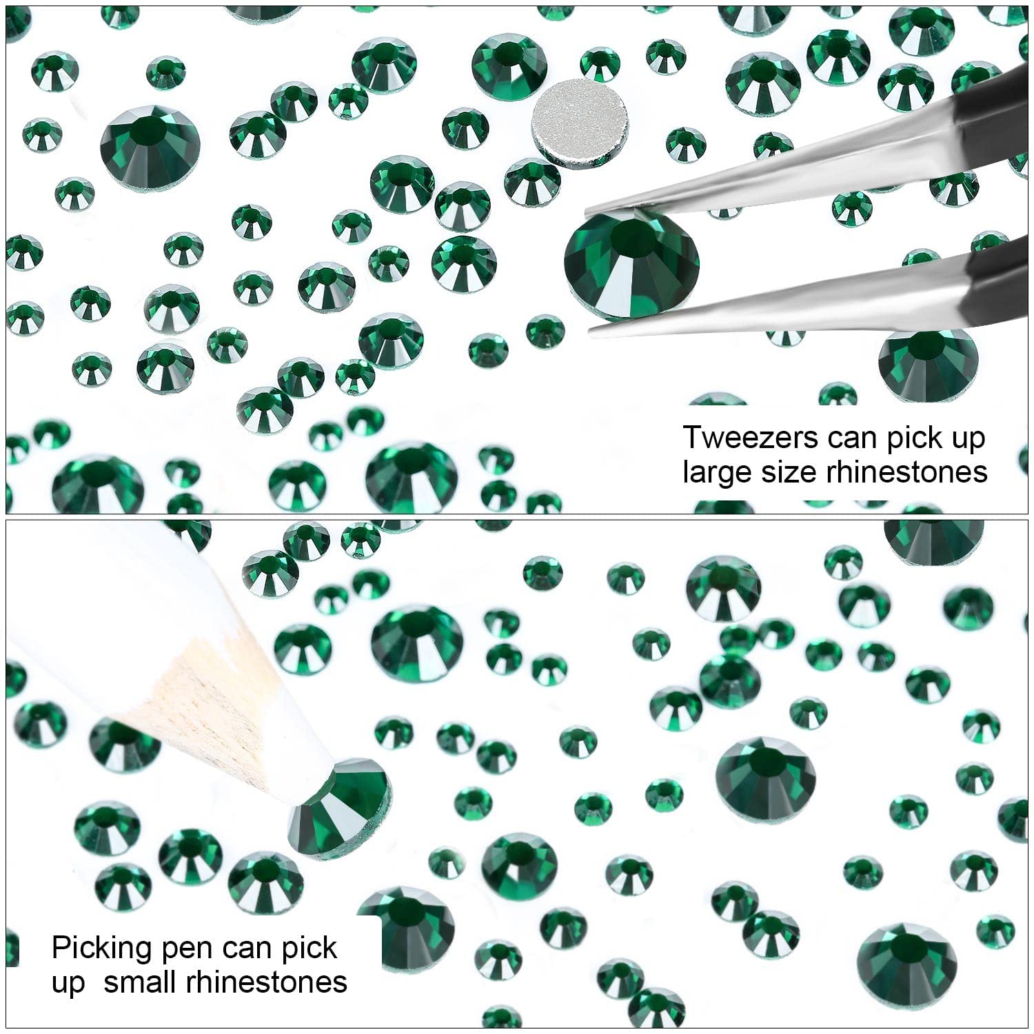 4240Pcs Malachite Green Flatback Rhinestones 6 Sizes Crystal Diamonds for Nail Art Crafts Clothes Shoes with Tweezers and Picking Pen