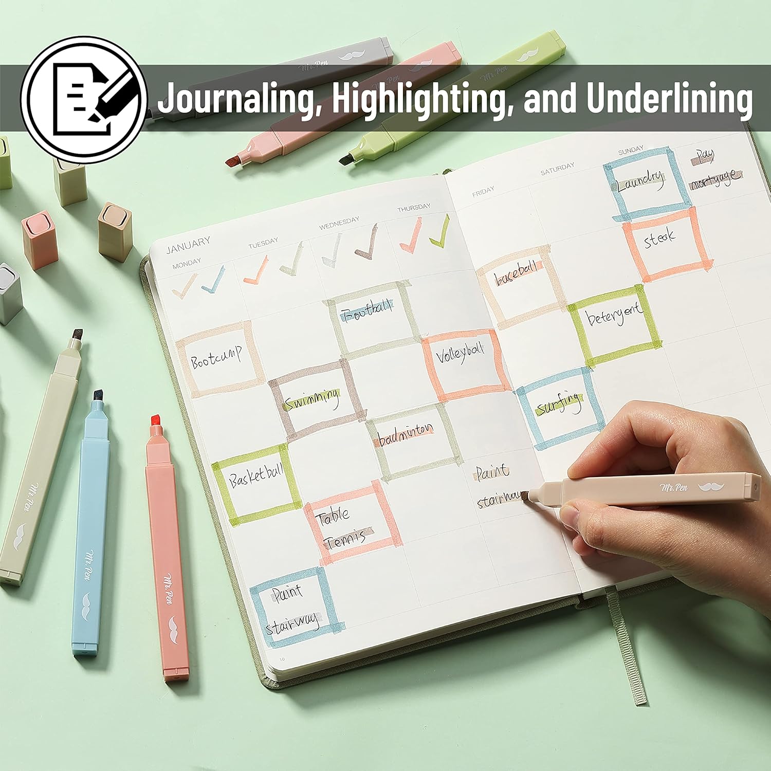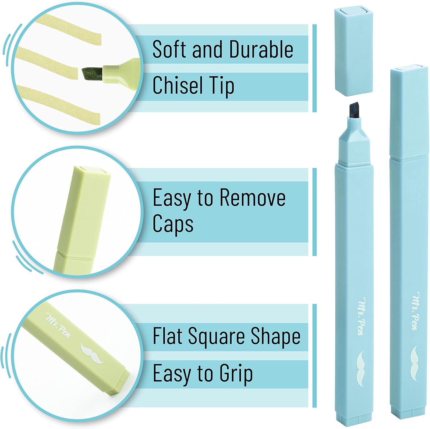 Mr. Pen- Aesthetic Highlighters, 8 pcs, Chisel Tip, Vintage Colors, No Bleed Bible Highlighter Pastel, Highlighters Assorted Colors, Pastel Highlighter Set, Cute Highlighter