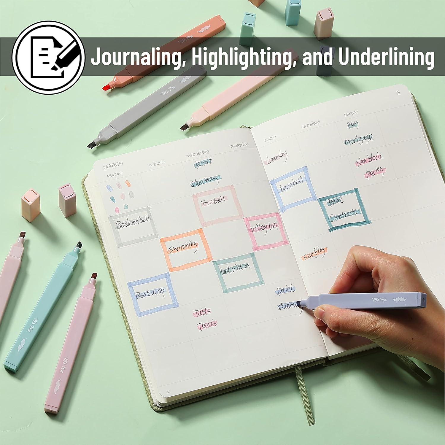 Mr. Pen- Aesthetic Cute Highlighters, 8 pcs, Chisel Tip, Earthy Colors, Assorted Colors,No Bleed Bible Pastel Highlighter Set