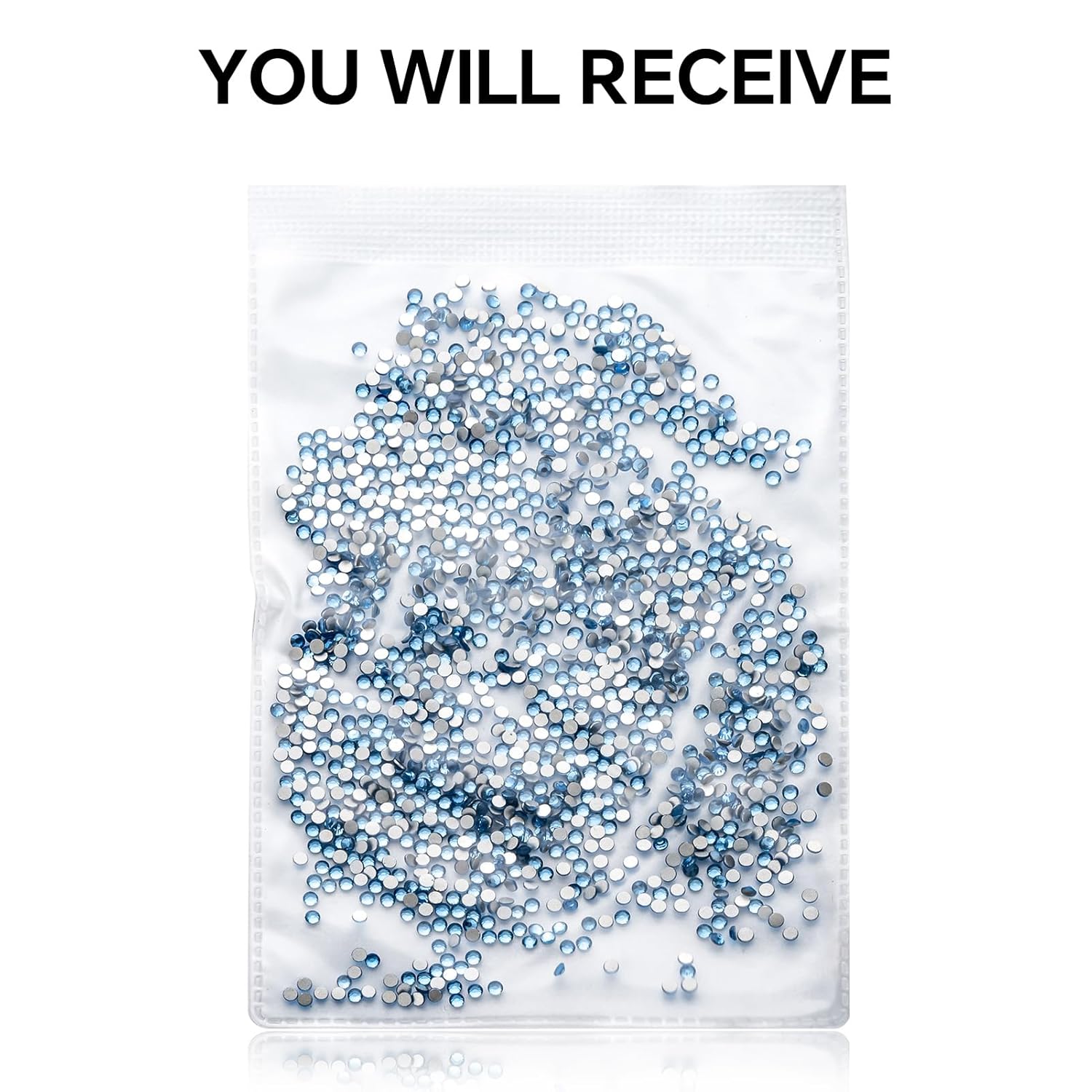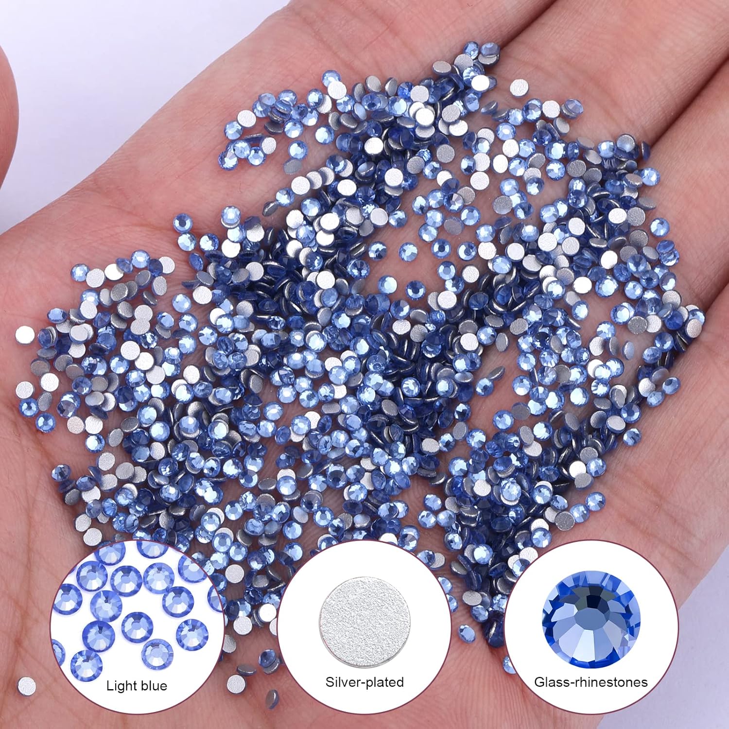 3000Pcs Light Blue Crystal Rhinestones,Glass Flatback Rhinestones Gemstones Mini for Nail Face Makeup Art Crafts Clothes Decoration - (SS6,2.0mm,Light Blue)