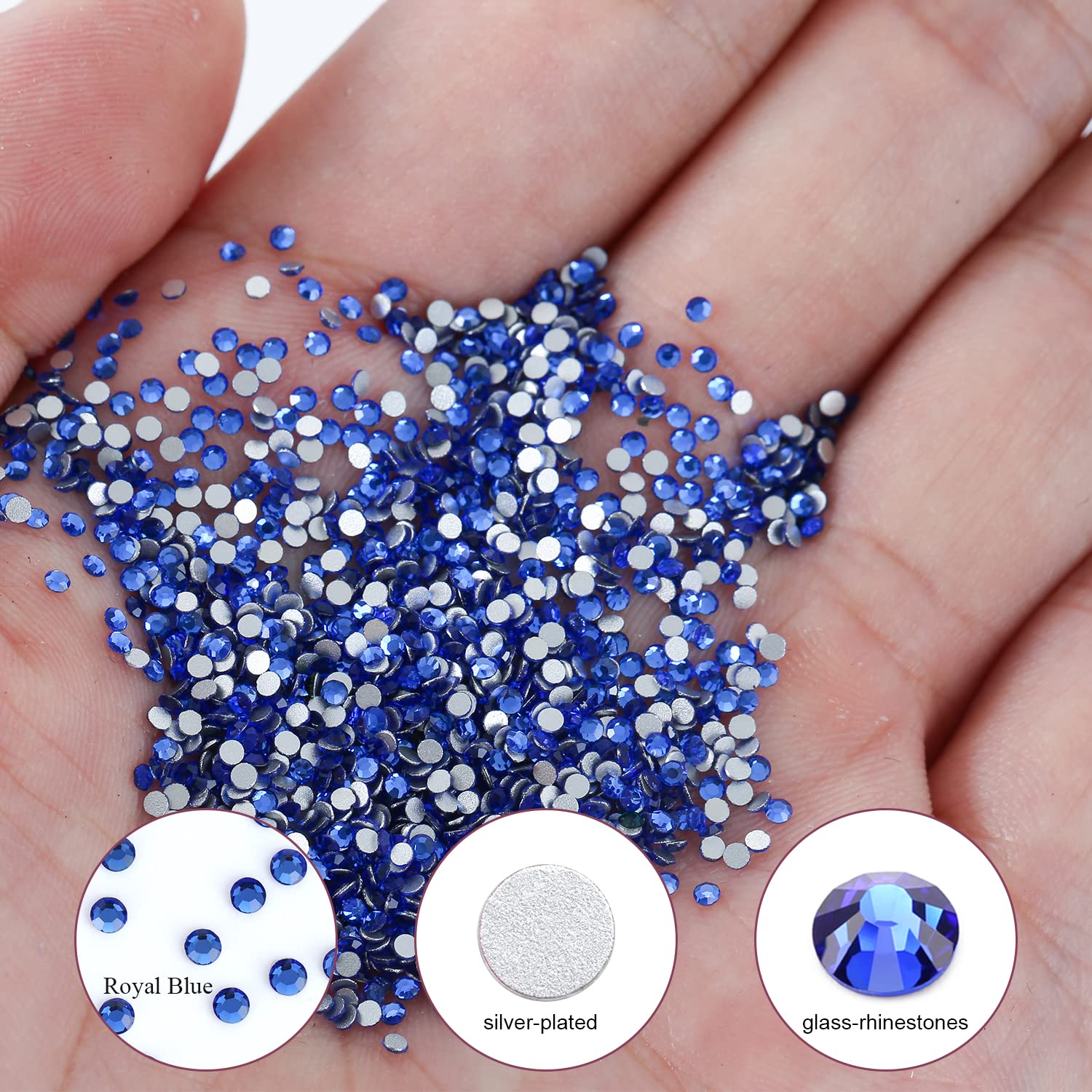 3000Pcs Royal Blue Crystal Rhinestones,Glass Flatback Rhinestones Mini Gemstones for Nail Face Makeup Art Crafts Clothes Decoration -(SS8,2.4mm,Royal Blue)