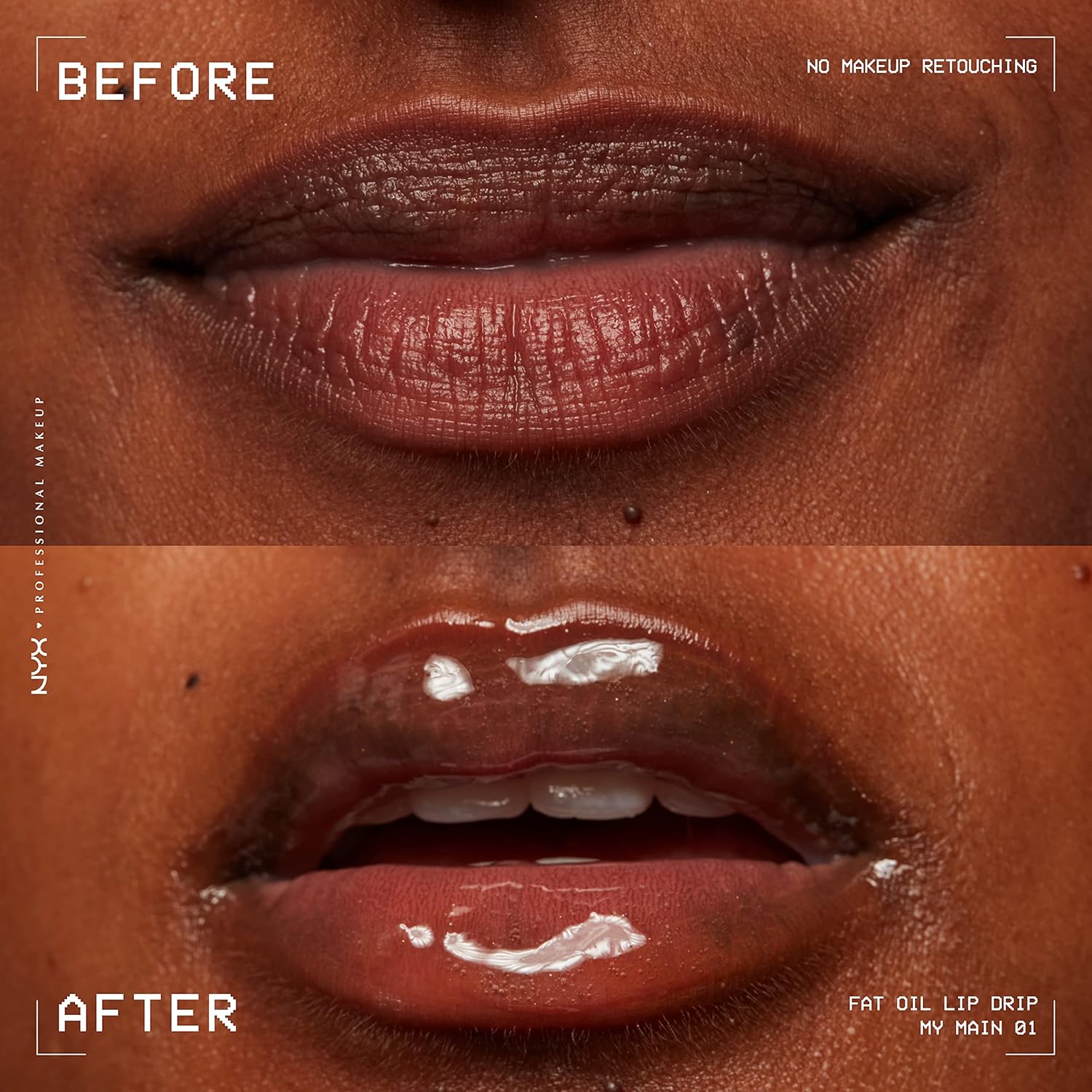 NYX PROFESSIONAL MAKEUP Fat Oil Lip Drip, Moisturizing Lip Oil Gloss, Vegan Tinted Formula, Up to 12 HR Hydration - My Main (Clear)