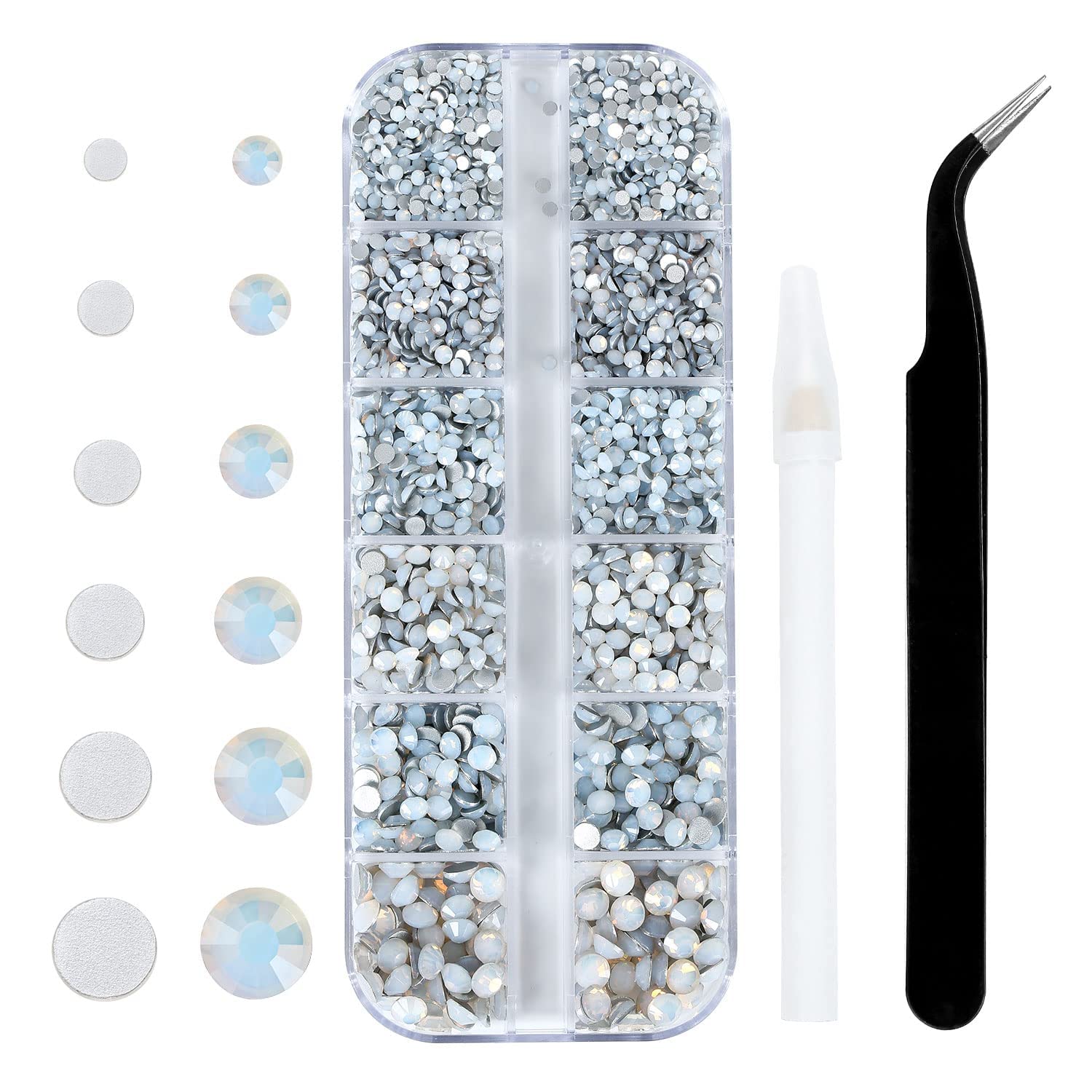 4240Pcs White Opal Flatback Rhinestones 6 Sizes Crystal Diamonds for Nail Art Crafts Clothes Shoes with Tweezers and Picking Pen