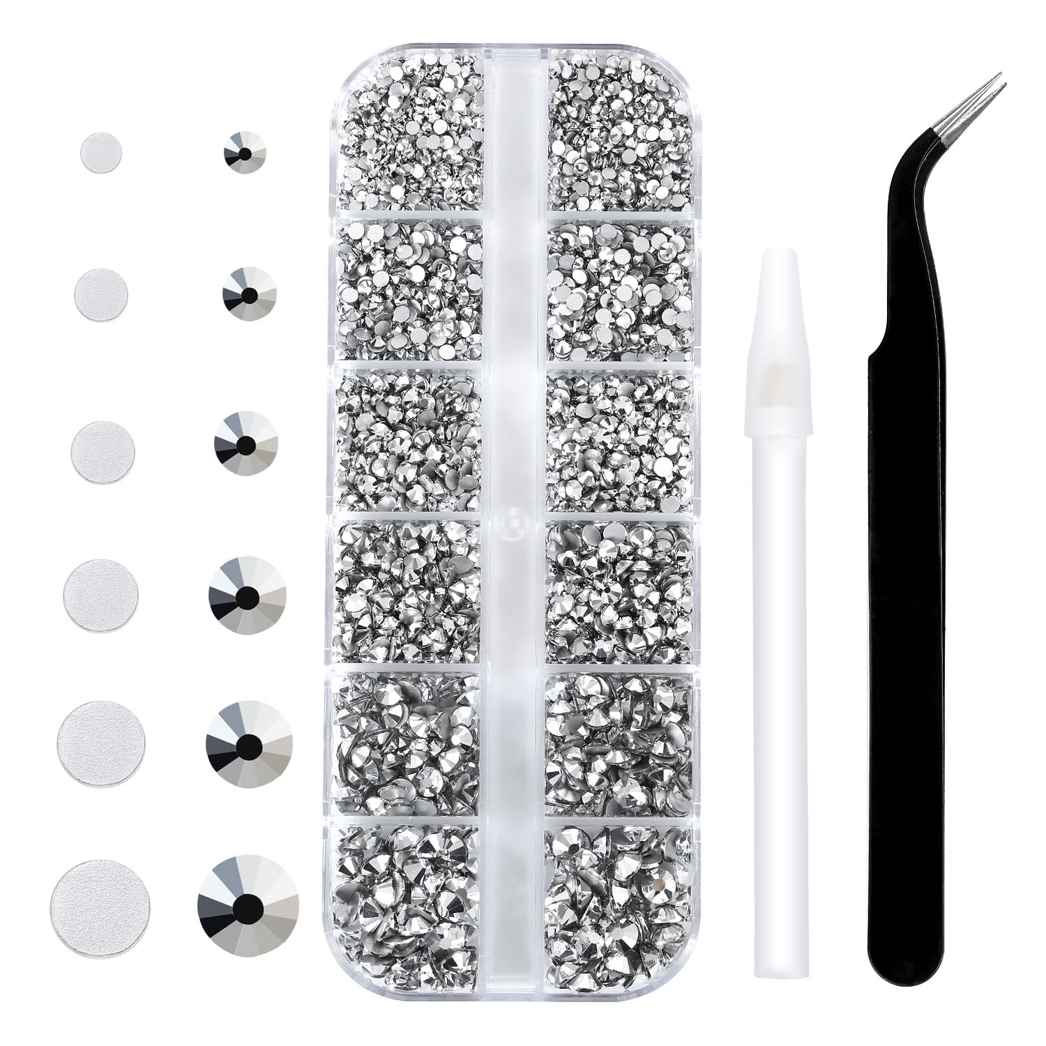 4240Pcs Silver Flatback Rhinestones 6 Sizes Crystal Diamonds for Nail Art Crafts Clothes Shoes with Tweezers and Picking Pen