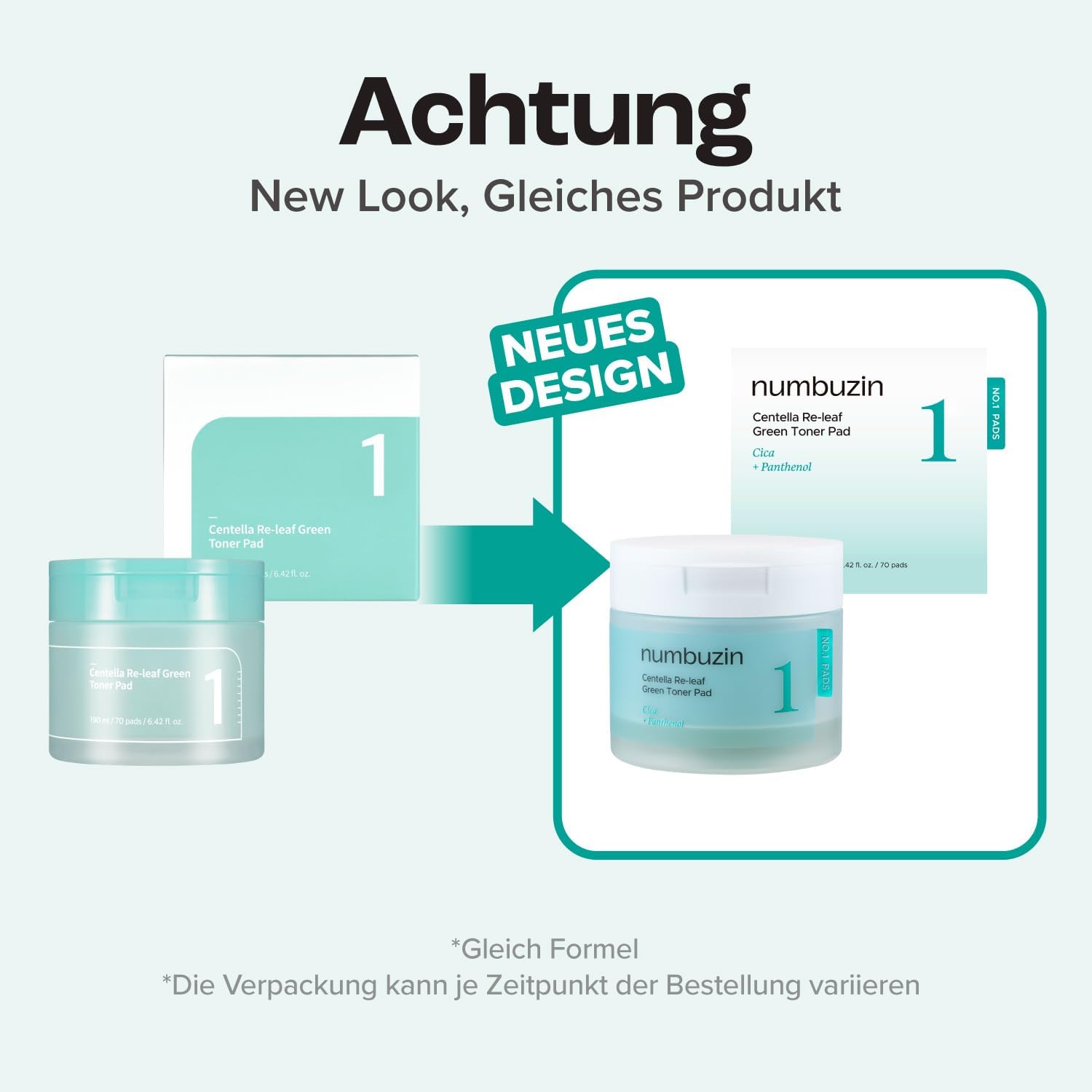 numbuzin No.1 Toner Pads | Centella Re-Leaf Green Toner Pad | Double-Sided | Centella Asiatica, Heartleaf, Licorice Root | Calming, Hydrating, Exfoliating | 70 Pads/6.42 fl. oz.