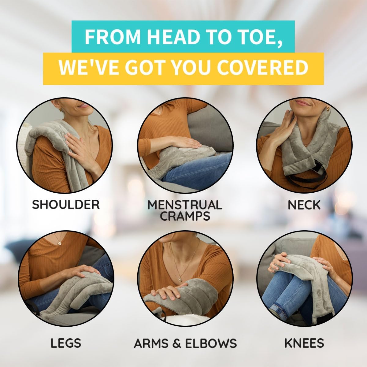 - SOOTHING, EFFECTIVE RELIEF: Our versatile microwavable heating pad is not just for your neck and shoulders. Ease aches and discomfort anywhere you feel them on your body. Our microwavable heating pads allow you to manage discomfort easily, safely and effectively on your neck, shoulder, knee, elbow, and back. Manage muscle pain and cramps without the worry of side-effects from taking medication.