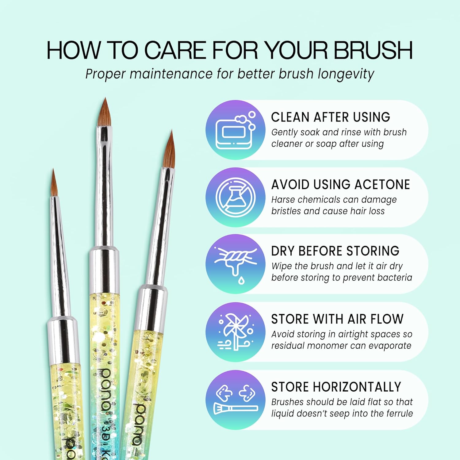 - [Design] Featuring a slim handle with eye-catching, shimmering glitter and a sleek silver ferrule, this 3D nail art brush offers both elegance and precision, making it ideal for intricate detailing.