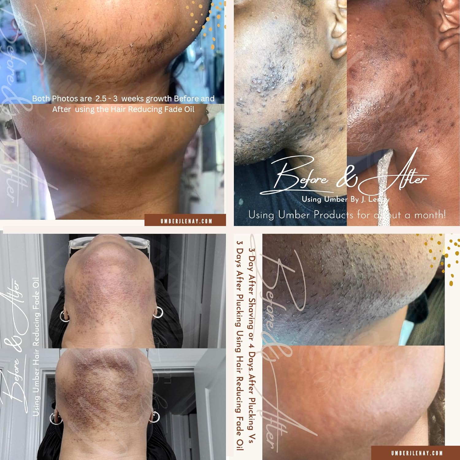 - Versatile Benefits: Beyond hair reduction, our Hair Reducing Spot Fade Oil also targets hyperpigmentation, scarring, and ingrown hairs. Daily use improves hair reduction, delays regrowth, and shrinks hair follicles. Results may vary, but changes can be observed within 2 weeks to 2 months.