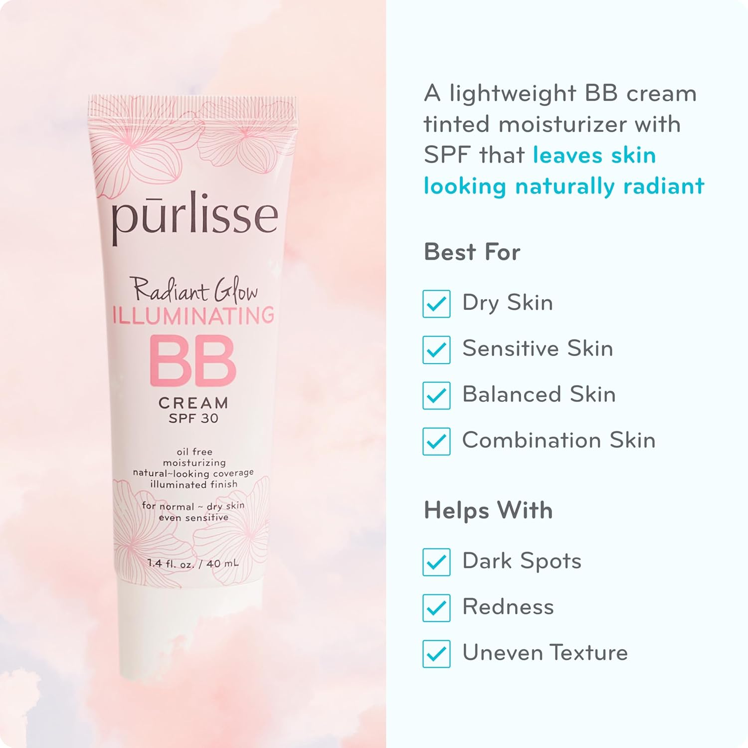 pūrlisse Radiant Glow Illuminating BB Cream with SPF 30 - Glow BB Cream Enriched with Goji & Hawthorn Berry for Dewy Skin - Helps to Improve Skin Texture & Radiance - Tan Deep (1.4 oz)