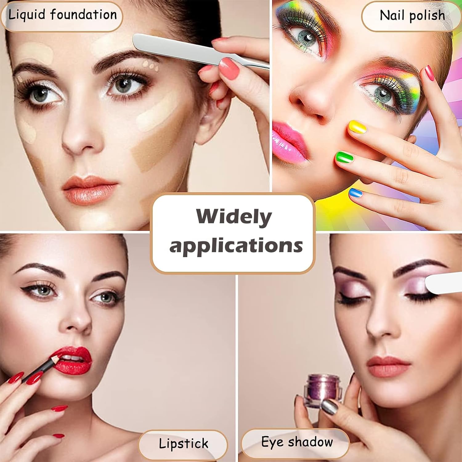 - šćWide ApplicationsćStainless steel foundation mixing tray and foundation spatula Korean are widely used, suitable for various of makeup use and daily use, can be used to mix lip gloss, concealer, foundation, eye shadows, nail polish, pigment, etc.