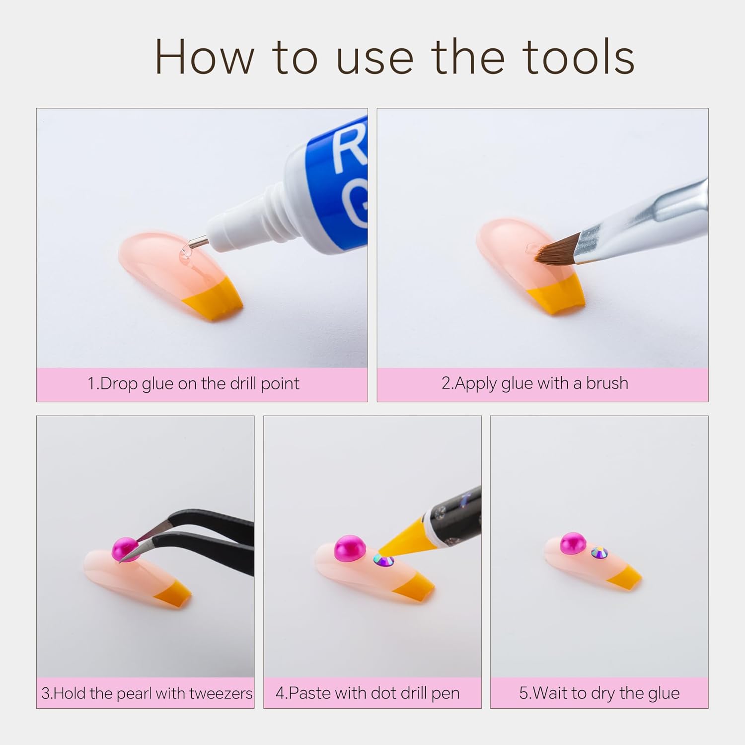- Useful tools - These pearls and rhinestones have a flat back, which is excellent for easy placement.and you can pick up any large or small pearls and rhinestones with the crayons we bring along. And use the brush to smooth out the Gel, these tools will work very well