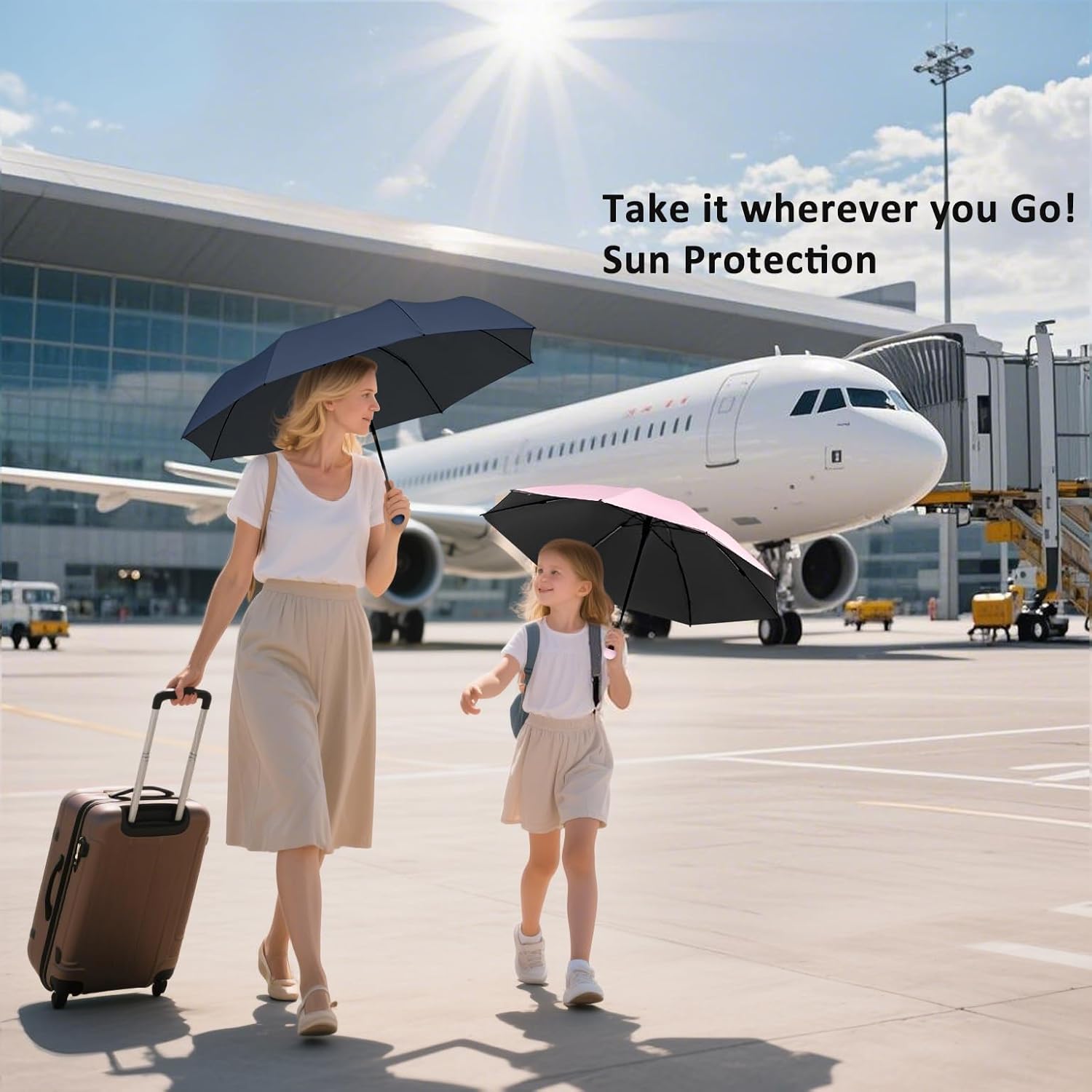 BAODINI Travel Essentials Mini Umbrella for Purse With Case Small Compact UV Sun Protection Lightweight Tiny Pocket Manual Open Close Umbrella for Women Kids and Men Fit Purse Backpack