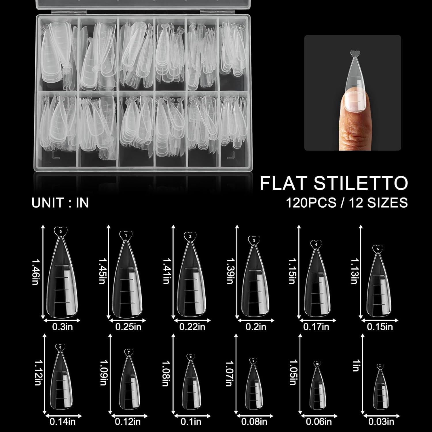 120Pcs Dual Nail Forms,Flat Stiletto Extension Poly Nail Gel Nail Forms Full Cover Reusable Nail Molds 12 Sizes for Solid Nail Gel Glue Nail Art Design Salon&DIY