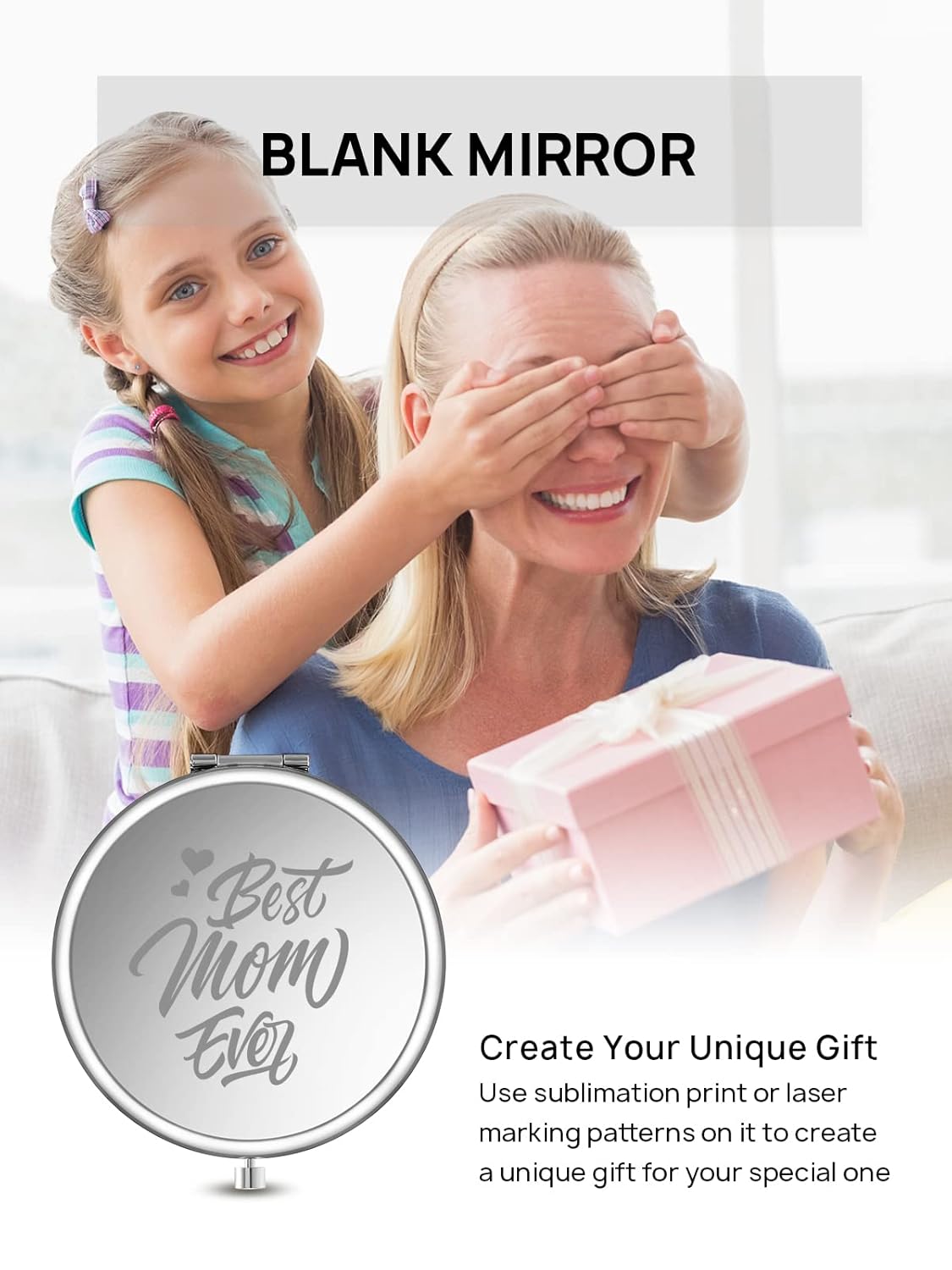 - BLANK MIRROR: DIY friendly. Use sublimation print or laser marking patterns on it to create a unique gift. Customize gifts for your mom, father, daughter, friend, wife, etc., to make them feel special
